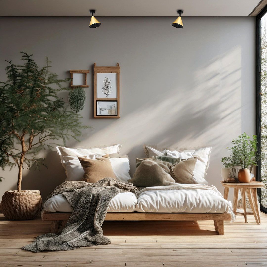 Mała lampa sufitowa złota nowoczesna Spot 1xGU10 CONE - lampa przysufitowa, lampa złoto czarna pojedyncza typu spot sprawdzi się praktycznie w większości aranżacji - jako oświetlenie w kuchni sufitowe, nowoczesne oświetlenie korytarza, oświetlenie sufitowe w salonie. Lampa na sufit w formie pojedynczego, złotego stożka wykończonego czarnym kolorem posłuży jako oświetlenie punktowe, dodatkowe.