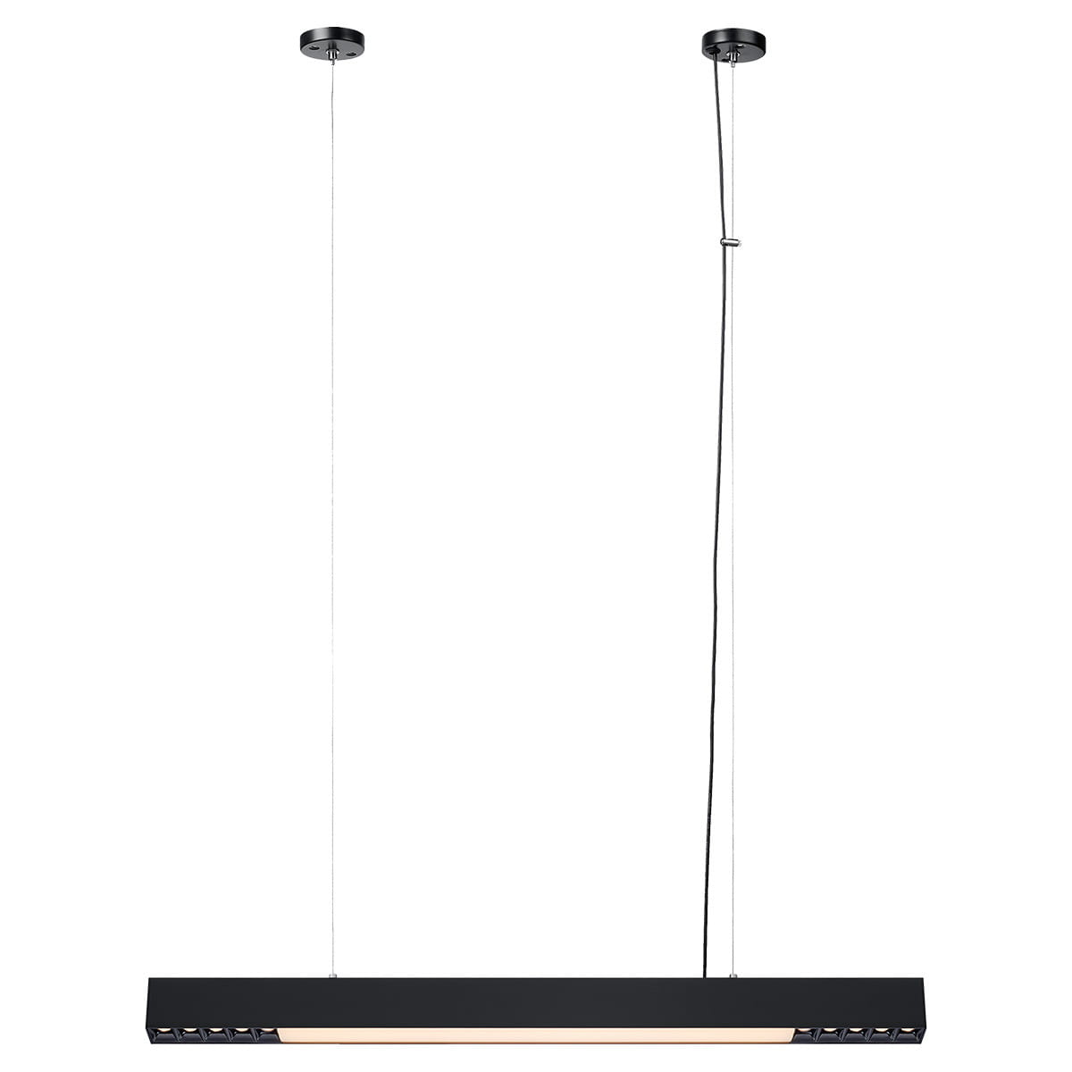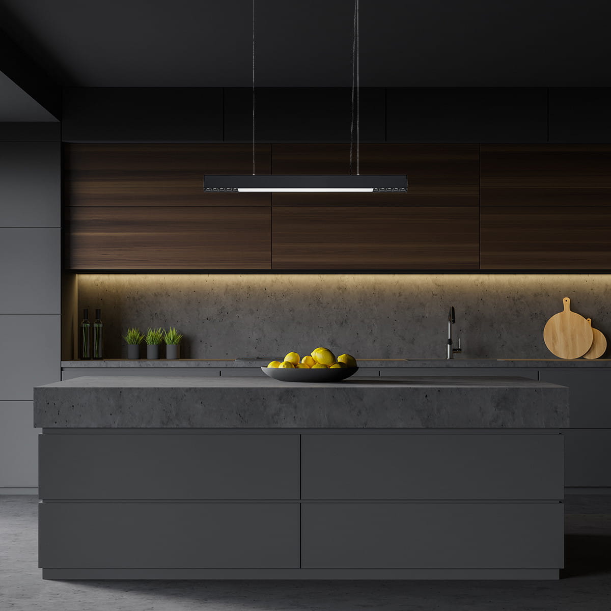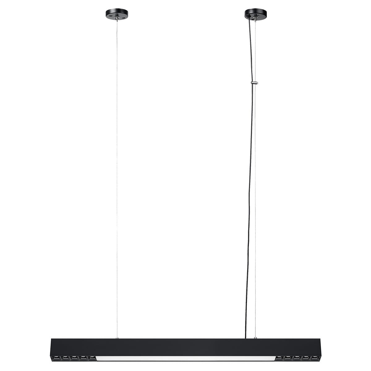 Nowoczesna lampa ledowa wisząca czarna 120 cm CALI M Tuya LED CCT - lampa ledowa nowoczesna o prostej konstrukcji listwy łączy w sobie nowoczesny design i zaawansowaną technologię. Lampa nad wyspę, lampa nad stół do nowoczesnej jadalni, ale sprawdzi się również w eleganckim biurze.