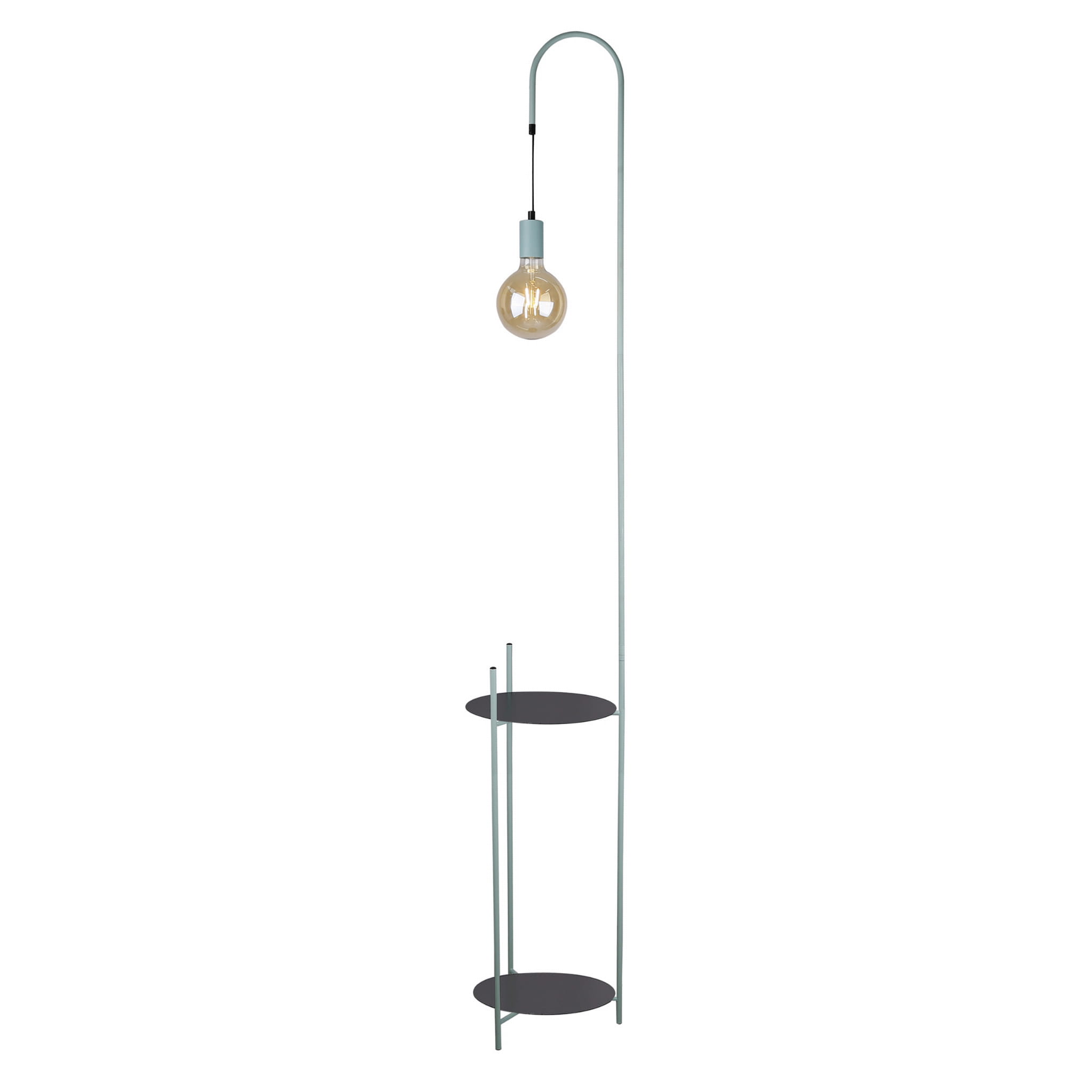 Nowoczesna lampa podłogowa czarna z miętowym 1xE27 40W WALK - unikatowa lampa stojąca metalowa z dwoma stolikami. Lampa podłogowa czarna z miętowym - świetna ozdoba do wnętrz nowoczesnych.