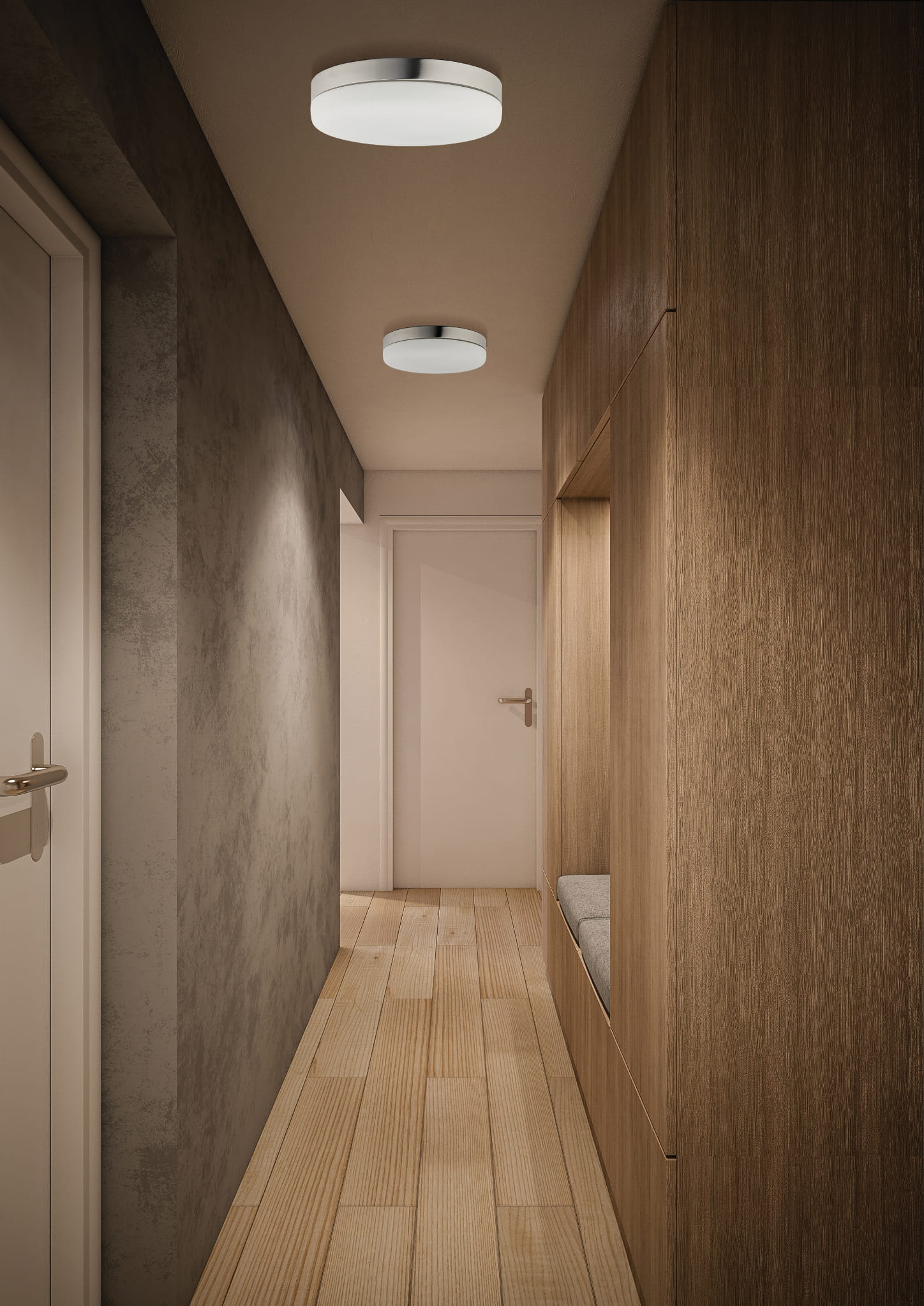 Plafon nowoczesny biały ze srebrnym 32 cm KASAI - nowoczesna lampa sufitowa biała ze srebrnym wykończeniem ze stali szczotkowanej. Lampa do kuchni, lampa na korytarz, lampa do przedpokoju ale również lampa biurowa. Klasyczna prosta forma to gwarancja że biały plafon nowoczesny wpasuje się w większość pomieszczeń i aranżacji.