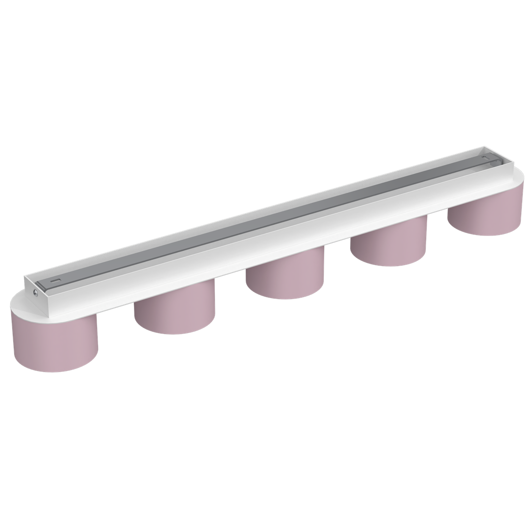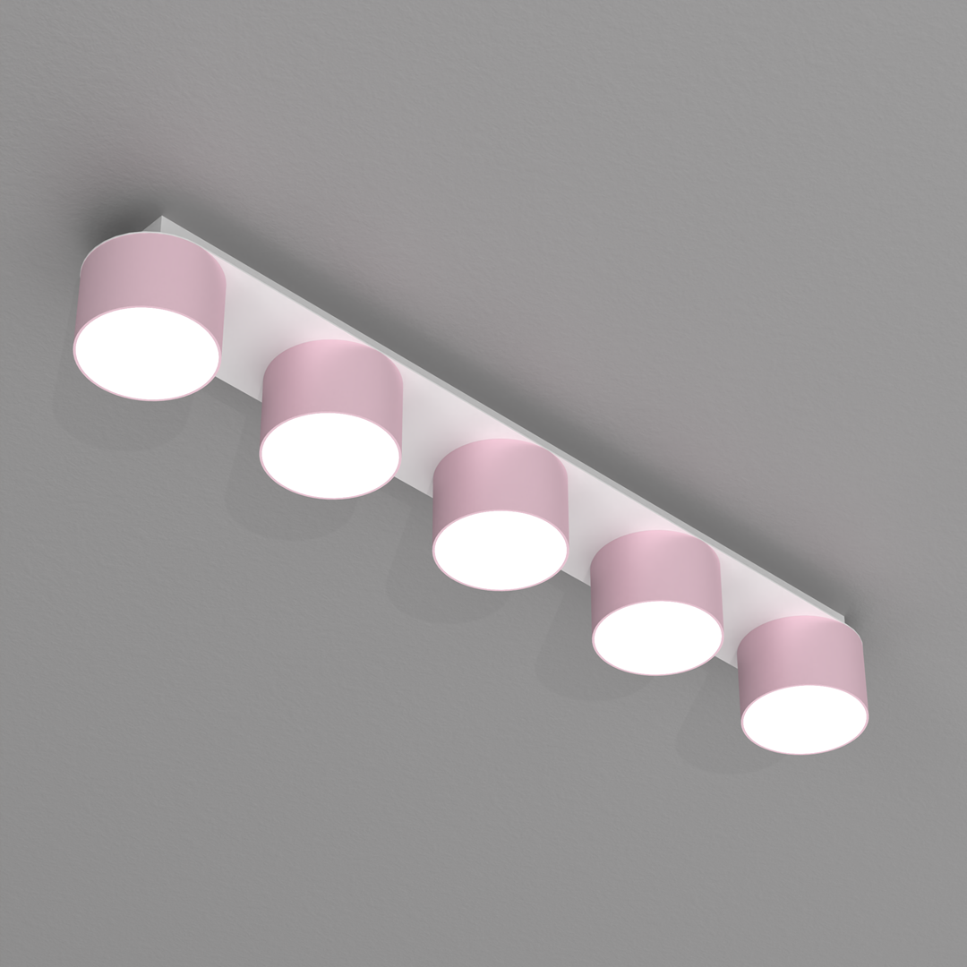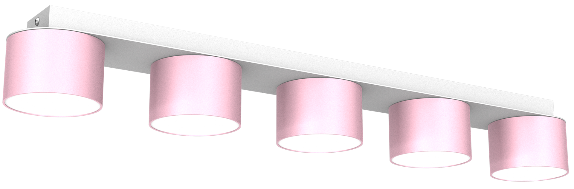 Różowa lampa dziecięca sufitowa 5xGX53 DIXIE PINK/White - lampa przysufitowa listwa, lampa dla dziewczynki w formie białej listwy do której zamocowano różowe klosze.
