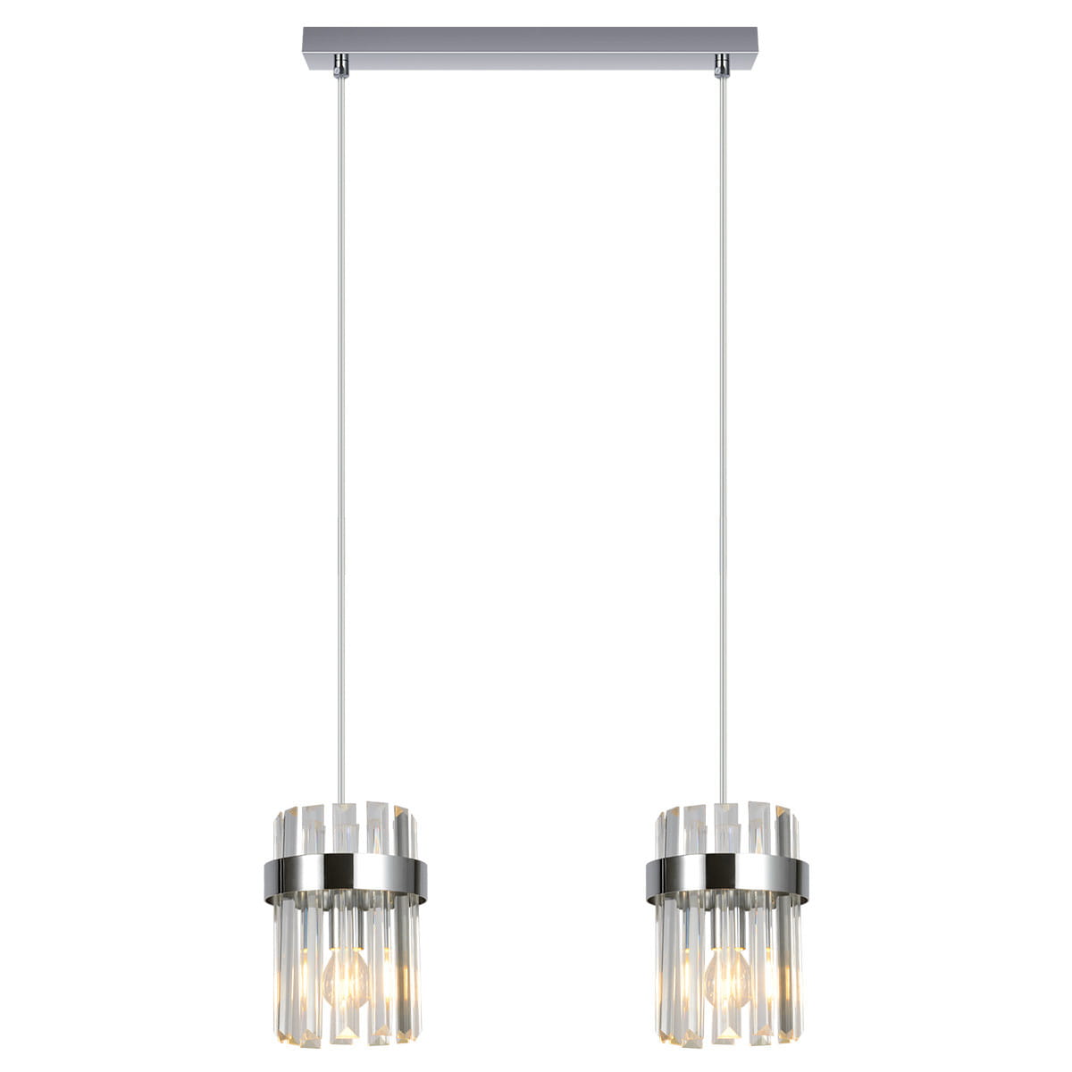Srebrna lampa wisząca podwójna z kryształami 150 cm 2xE14 chrom VETRO