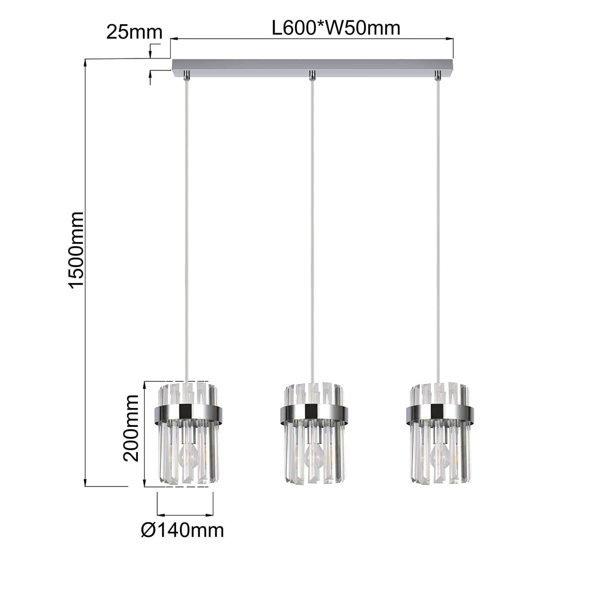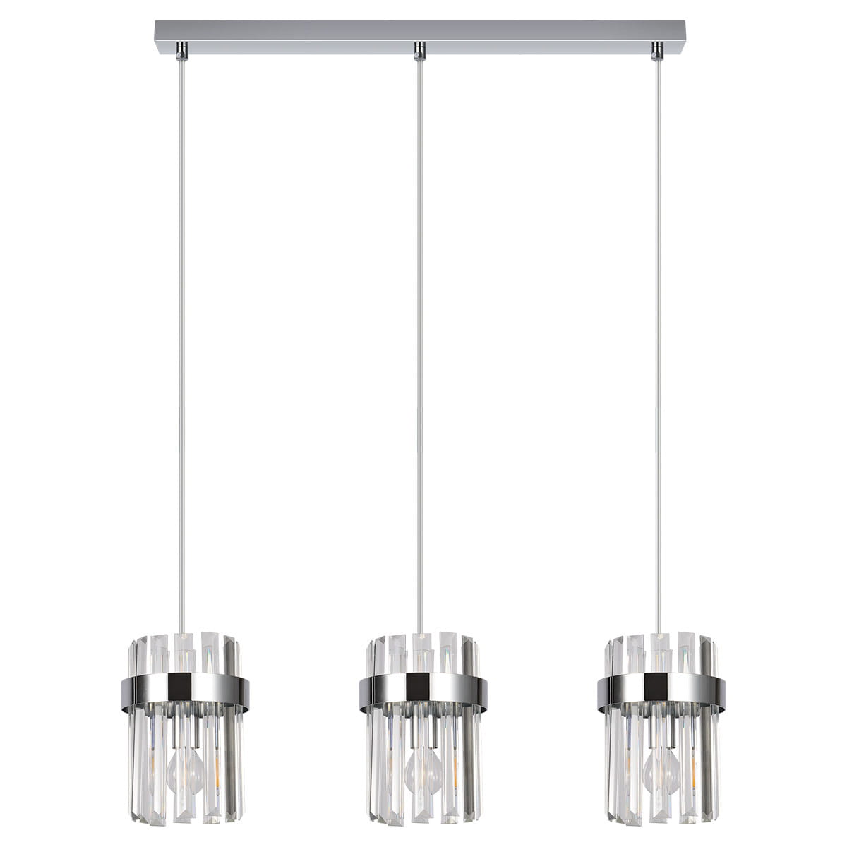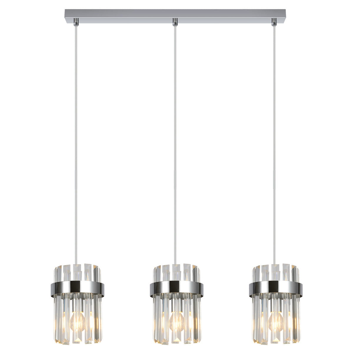 Srebrna lampa wisząca potrójna z kryształami 150 cm 3xE14 chrom VETRO