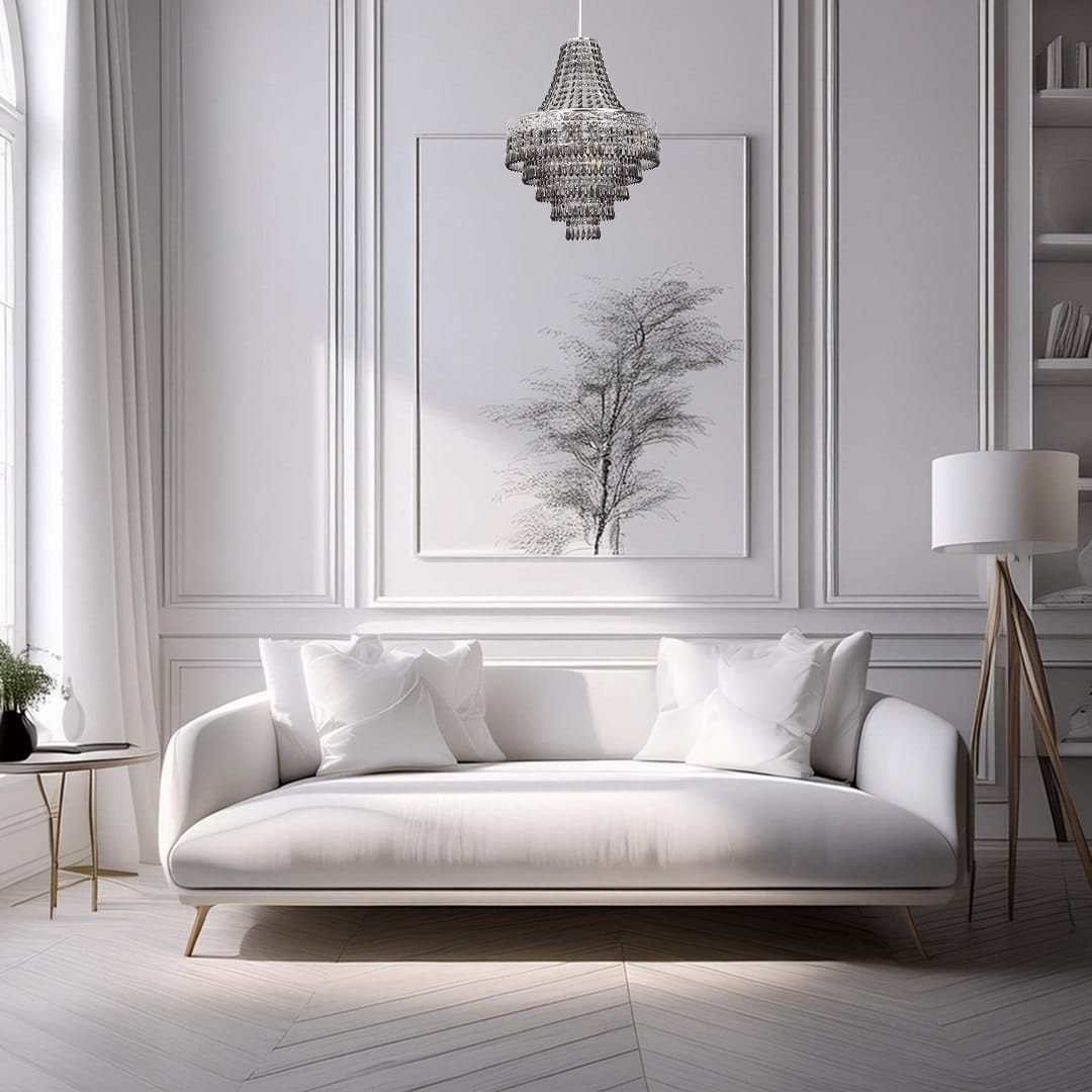 Żyrandol nowoczesny - luksusowa propozycja, która natychmiast nada Twojemu wnętrzu elegancji i blasku. Piękny, wielowarstwowy design przyciąga uwagę i staje się centralnym punktem każdego pomieszczenia. Dzięki misternie wykonanym detalom, lampa sufitowa wisząca CORAL wpisuje się w klasyczne i glamour wnętrza, dodając im szyku i wyrafinowanego stylu. Jej wyjątkowa forma oraz blask doskonale sprawdzą się w salonie, jako lampa w jadalni lub przestronnym holu, tworząc niezapomniany efekt wizualny.