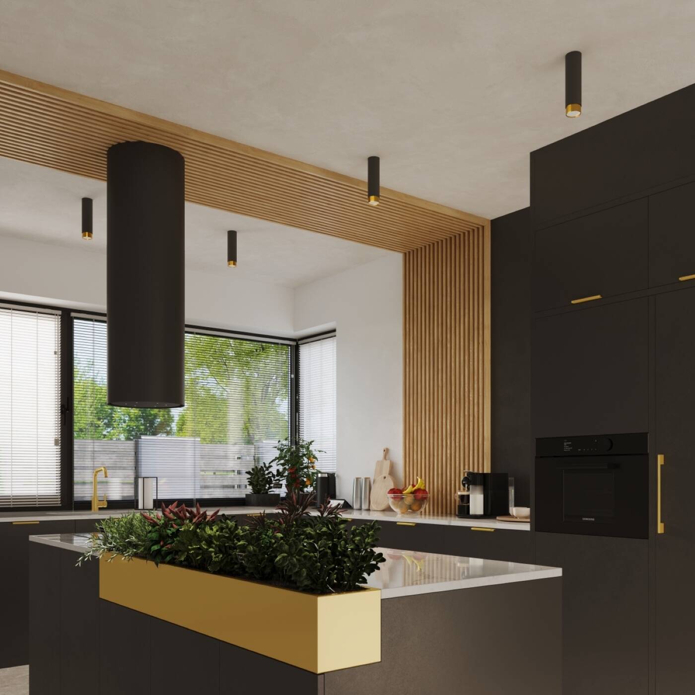 Tuba sufitowa czarna ze złotym to eleganckie i nowoczesne oświetlenie, które idealnie wpasuje się w każdą aranżację wnętrza. Cylindryczny kształt lampy, połączony z minimalistycznym designem, tworzy wyrafinowany efekt, który podkreśli styl każdego pomieszczenia. Lampa sufitowa tuba świetlna czarny/złoto, stanowi doskonałe połączenie nowoczesnej estetyki z subtelnym akcentem luksusu, wprowadza ciepło i prestiżowy charakter. Lampy z serii NERO są idealnym wyborem zarówno do przestrzeni domowych, jak i komercyjnych. Ich uniwersalny design sprawdzi się w salonach, korytarzach, biurach, czy hotelach, zapewniając nie tylko odpowiednie oświetlenie, ale również stylowy dodatek dekoracyjny.