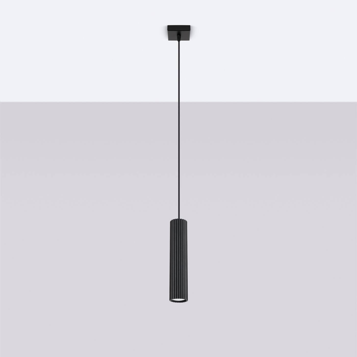 Lampa tuba wisząca w kolorze czarnym o wyjątkowej ryflowanej strukturze, idealna do aranżacji w nowoczesnych przestrzeniach.