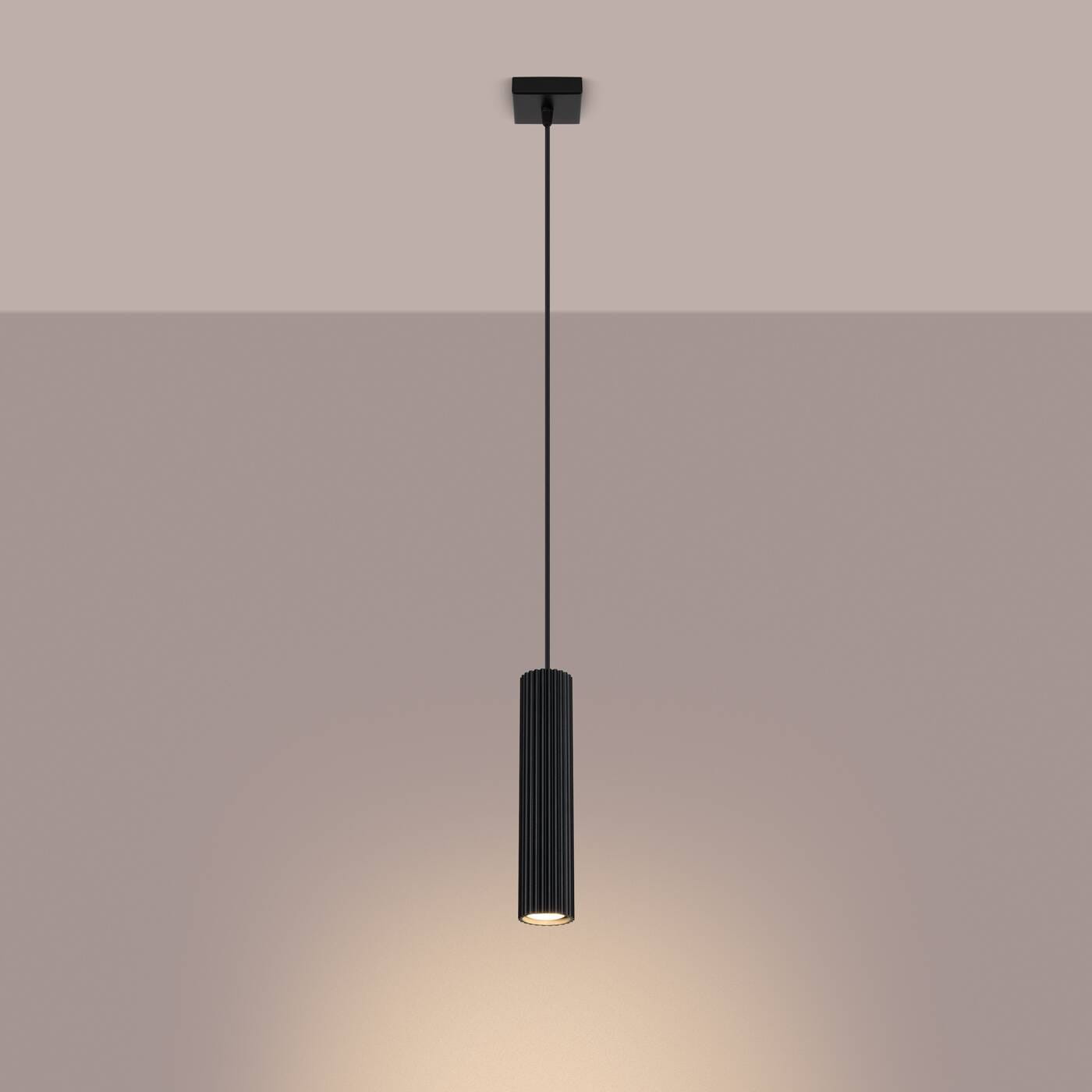 Tuba sufitowa wisząca ryflowana 1xGU10 KARBON 1 czarny - modna lamp wisząca czarna tuba ryflowana - idealna lamp nad wyspę, lampa do sypialni wisząca przy łóżku - fantastyczny dodatek do aranżacji z wykorzystaniem paneli ściennych.