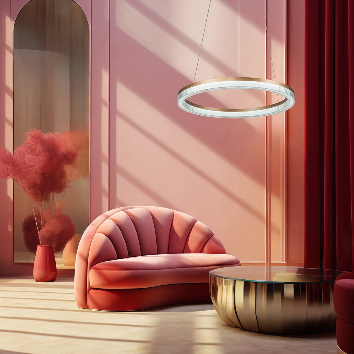 Lampa wisząca złota Midway Cristal Triangle to elegancki dodatek do każdego wnętrza, łączący w sobie nowoczesny design z funkcjonalnością. Wykonana z metalu w kolorze złota oraz transparentnego akrylu, prezentuje się niezwykle stylowo i prestiżowo.