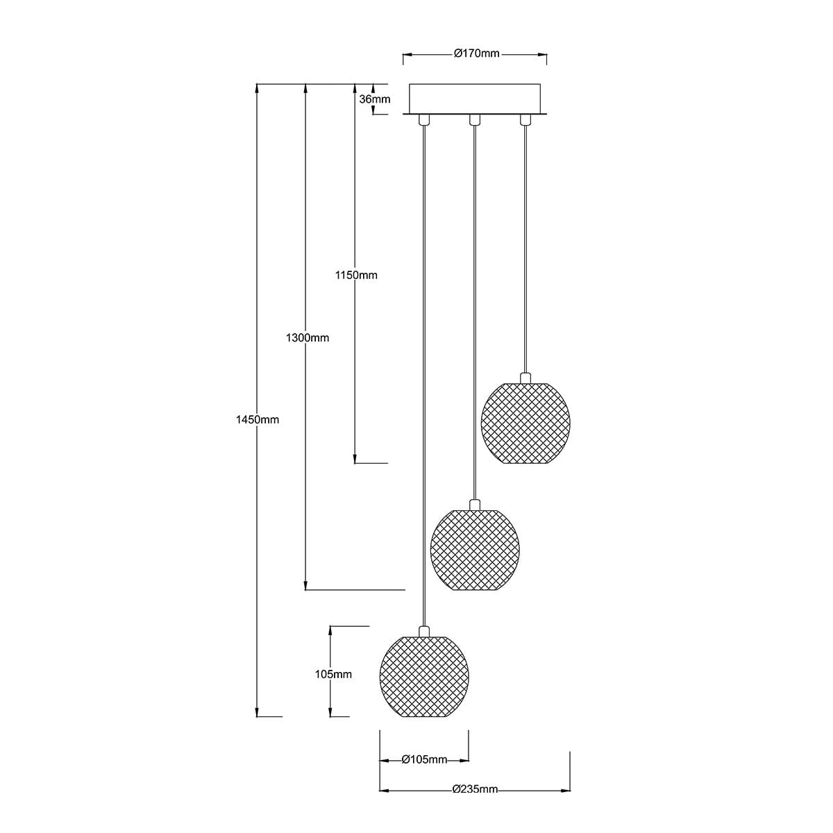 Złota lampa wisząca ledowa 145 cm Brillant 3 LED CCT - ekskluzywna lampa wisząca złota klosze szklane kule karbowane. Lampa do apartamentu, lampa do jadalni nad okrągły stół lampa do sypialni urządzonej z dbałością o każdy detal.