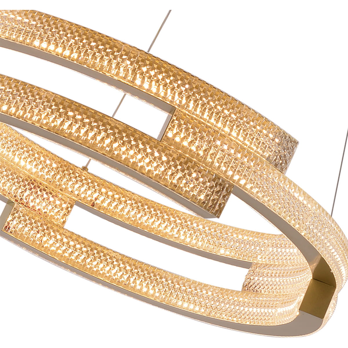 Złota lampa wisząca ledowa 150 cm TARJA LED CCT - duży, nowoczesny, zjawiskowy złoty żyrandol do salonu, żyrandol nad stół do jadalni, złota lampa wisząca do wnętrz luksusowych urządzonych z przepychem! Lampa wisząca glamour z możliwością regulacji barwy światła. Zmień zwykłe wnętrze w luksusowy apartament!