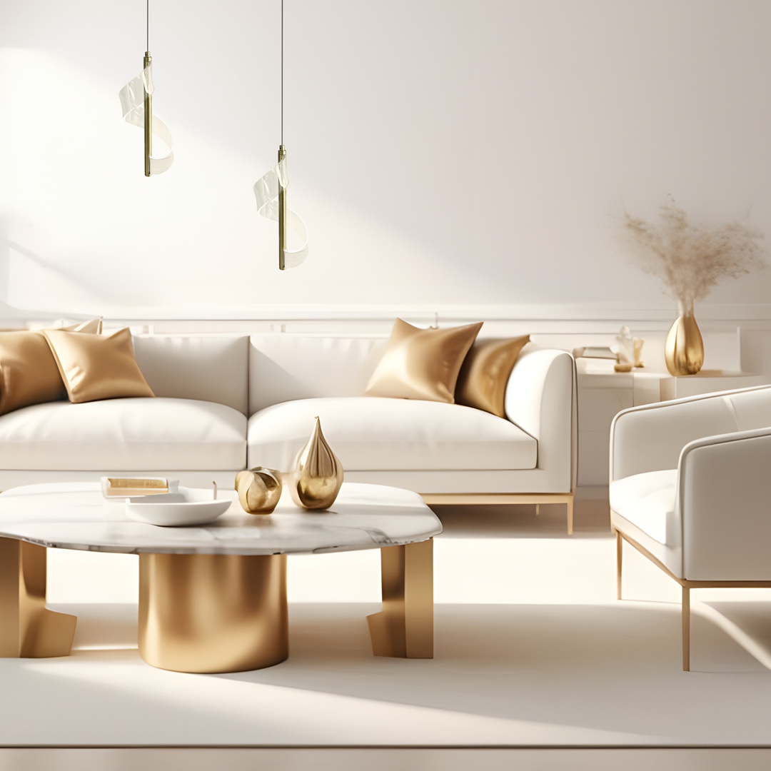 Lampa wisząca złota pojedyncza wykonana z metalu, aluminium i akrylu, emanująca unikalnym urokiem, dzięki swojemu niezwykłemu designowi, przypominającemu falujące formy. Złota lampaLARGO z pewnością wzbogaci każde pomieszczenie o wyjątkowy charakter i styl.