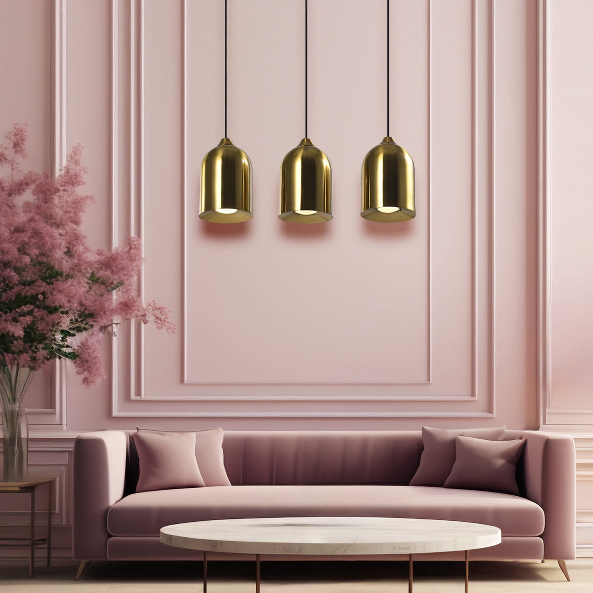 Złota lampa wisząca potrójna z czarnym wykonana z wysokiej jakości metalu, stanowi stylowy element, który doskonale uzupełnia wnętrza z dbałością o detale. Złota lampa wisząca potrójna NILO to elegancki wybór do nowoczesnych przestrzeni, które łączą funkcjonalność z unikalnym stylem. Potrójna lampa sufitowa - konstrukcja ze złotymi kloszami i czarną podsufitką, nadaje jej wyjątkowego charakteru, idealnie pasując do wnętrz w stylu nowoczesnym czy eleganckim. Dzięki solidnej podstawie montażowej lampa doskonale sprawdzi się jako lampa do jadalni nad długim stołem, lampa nad wyspą kuchenną lub ladą w przestrzeniach gastronomicznych, takich jak restauracje czy kawiarnie. To połączenie estetyki i jakości, które ożywi każdą przestrzeń.