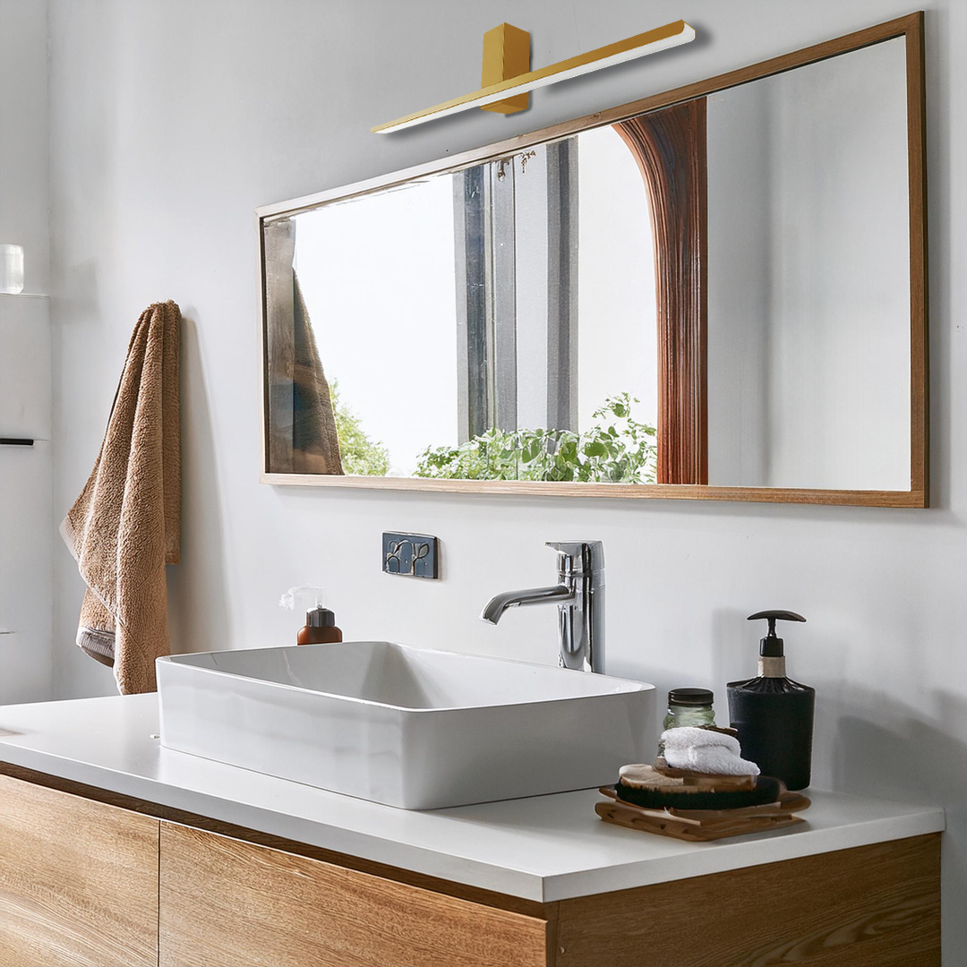 Złoty kinkiet łazienkowy IP44 60 cm 4000K Artemis GOLD 13,8W LED - nowoczesny kinkiet do łazienki, złoty kinkiet nad lustro o wysokiej odporności na warunki wilgotne. Złoty kinkiet łazienkowy obrazowy - równomiernie doświetla całą powierzchnię lustra - idealny do codziennego makijażu.
