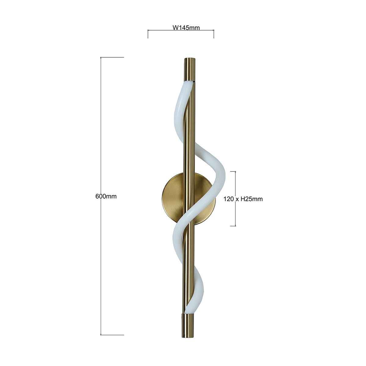 Złoty kinkiet ledowy, kinkiet nowoczesny MELECA LED CCT - zaskakujący i elegancki kinkiet nowoczesny, lampa ledowa na ścianę wykonana z metalu oraz spiralnie skręconego akrylu. Złoty kinkiet do salonu, kinkiet na korytarz, lampa ledowa nowoczesna z możliwością ustawienia odpowiedniej barwy światła LED.