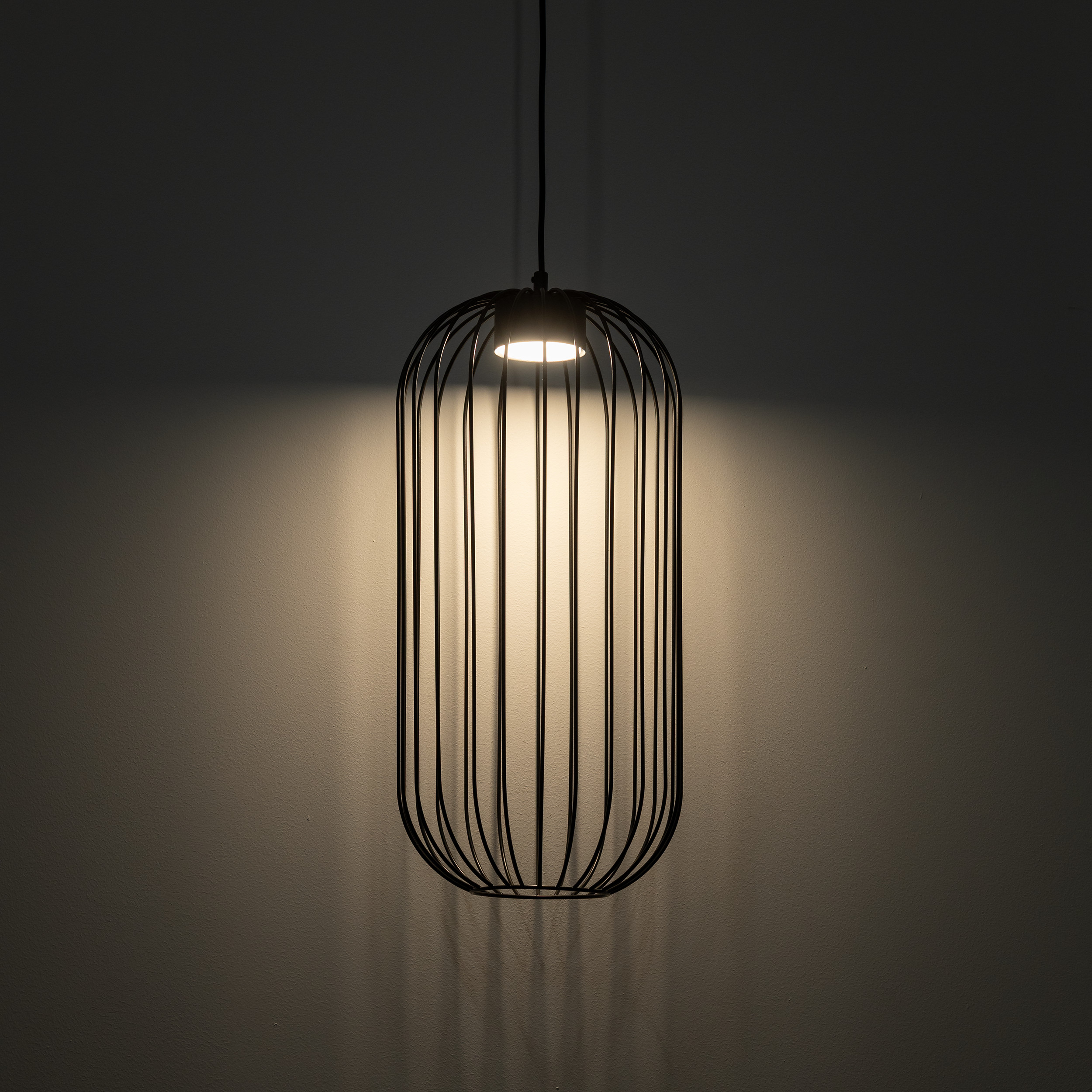 Lampa wisząca długa SPHERA to nowoczesne oświetlenie w formie lekkiego, ażurowego koszyka, który wprowadza do wnętrza subtelną grę światła i cienia.