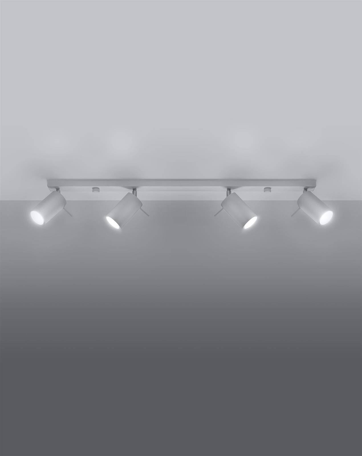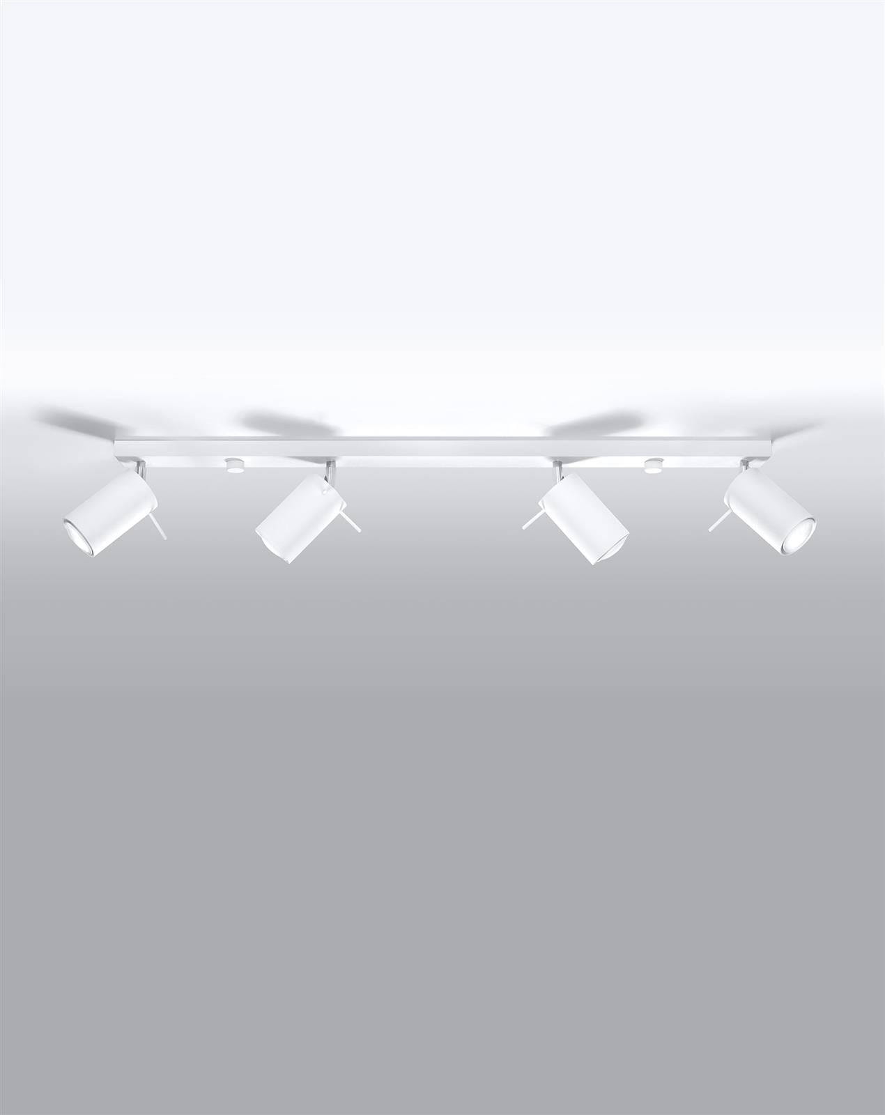 Biała lampa sufitowa regulowana listwa 4xGU10 plafon RING 4L spot - połączenie minimalistycznego designu z najwyższą funkcjonalnością. Biała lampa sufitowa nowoczesna posiada chromowane przeguby, pozwalające na regulację promieni świetlnych. Lampa przysufitowa listwa biała RING doskonale odnajdzie się w loftach oraz przestrzeniach urządzonych w stylach minimalistycznym oraz industrialnym. Precyzja, z jaką została wykonana, stanowi o nienagannej prezencji i długowieczności.
