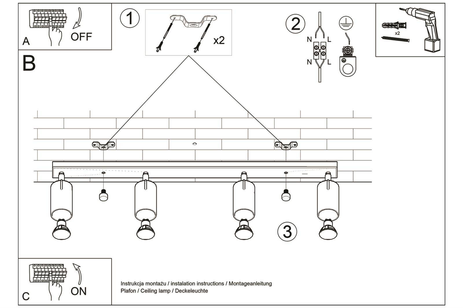 Ilość źródeł światła: 4xGU10 wymienne