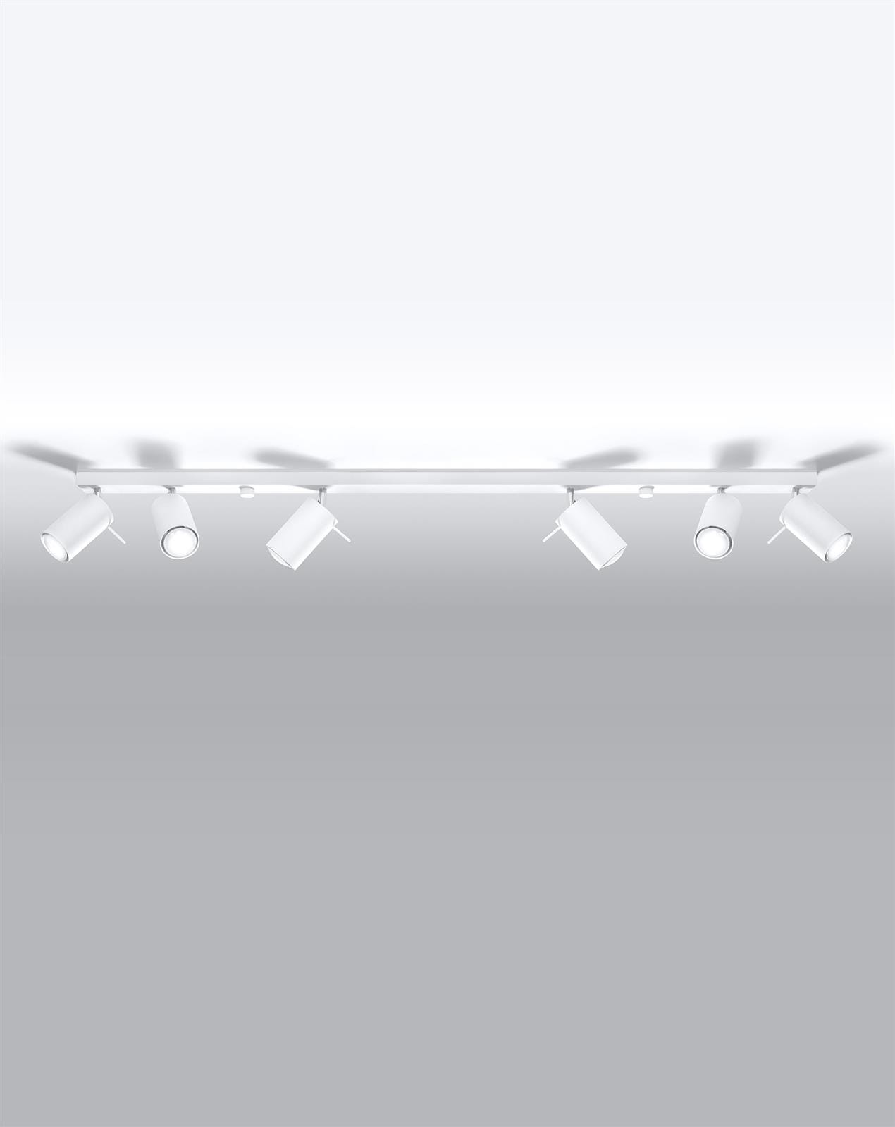 Biała lampa sufitowa regulowana listwa 6xGU10 plafon RING 6L spot - połączenie minimalistycznego designu z najwyższą funkcjonalnością. Biała lampa sufitowa nowoczesna posiada chromowane przeguby, pozwalające na regulację promieni świetlnych. Lampa przysufitowa listwa biała RING doskonale odnajdzie się w loftach oraz przestrzeniach urządzonych w stylach minimalistycznym oraz industrialnym. Precyzja, z jaką została wykonana, stanowi o nienagannej prezencji i długowieczności.