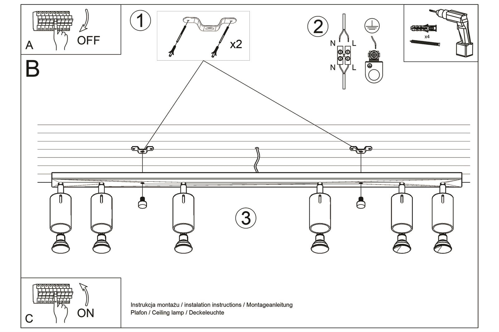 Ilość źródeł światła: 6xGU10 wymienne