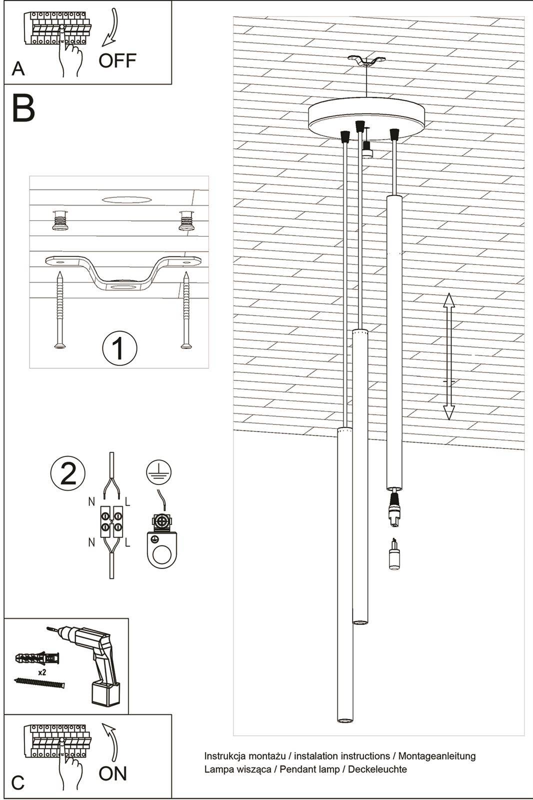 Biała lampa wisząca potrójna tuby sufitowe 3xG9 PASTELO 3P - potrójna lampa wisząca biała, lampa nad wyspę kuchenną, lampa nad stół - białe tuby świetlne łączące klasykę z nowoczesnością, nawiązując kształtem do tradycyjnych świec.