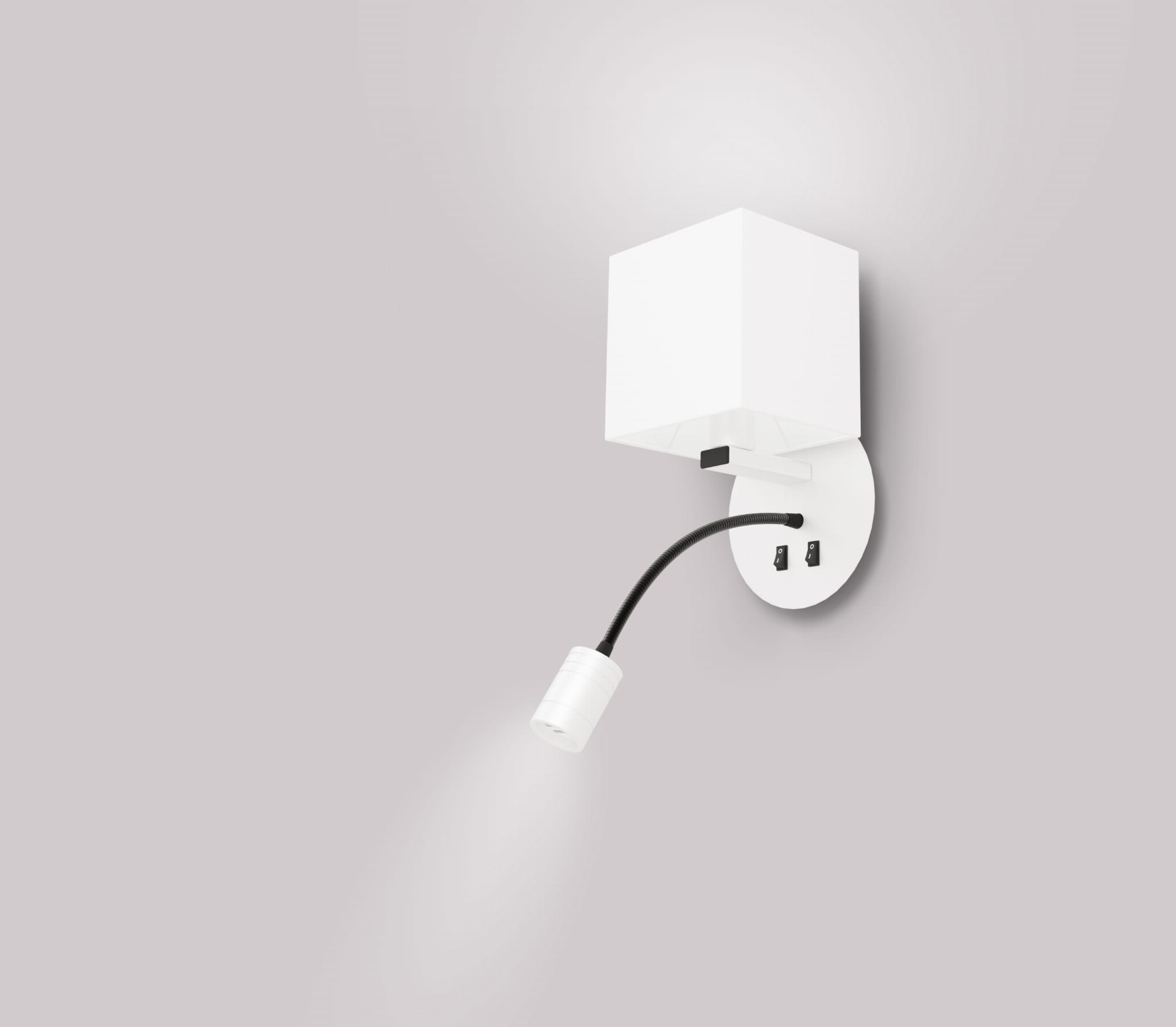 Biały kinkiet nowoczesny klosz kwadratowy 1xE27 3W LED MAGNUM - nowoczesny kinkiet z doświetlaczem ledowym oraz podwójnym wyłącznikiem. Kinkiet do salonu, kinkiet do sypialni idealny również do pokoi hotelowych. Sprawdzi się dla miłośników książek jako nowoczesny kinkiet do czytania.