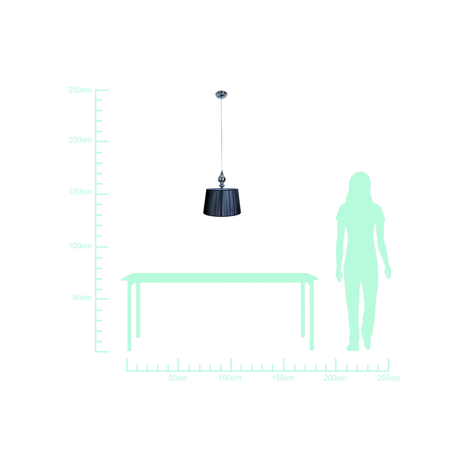 Materiał: abażur nitkowy/PVC, zawiesie ze sztycą metalową