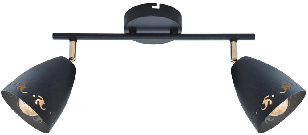 Czarna lampa sufitowa dziecięca listwa COTY 2XE14 40W - matowa czerń będzie świetnym kontrastem dla kolorów w każdym wnętrzu, metalowe klosze efektywnie kierunkują strumień światła. Czarna lampa sufitowa posiada dekoracyjne wycięcia na obrzeżach klosza, które dodają efektów świetlnych oraz możliwość regulacji kąta nachylenia klosza w pionie i poziomie.