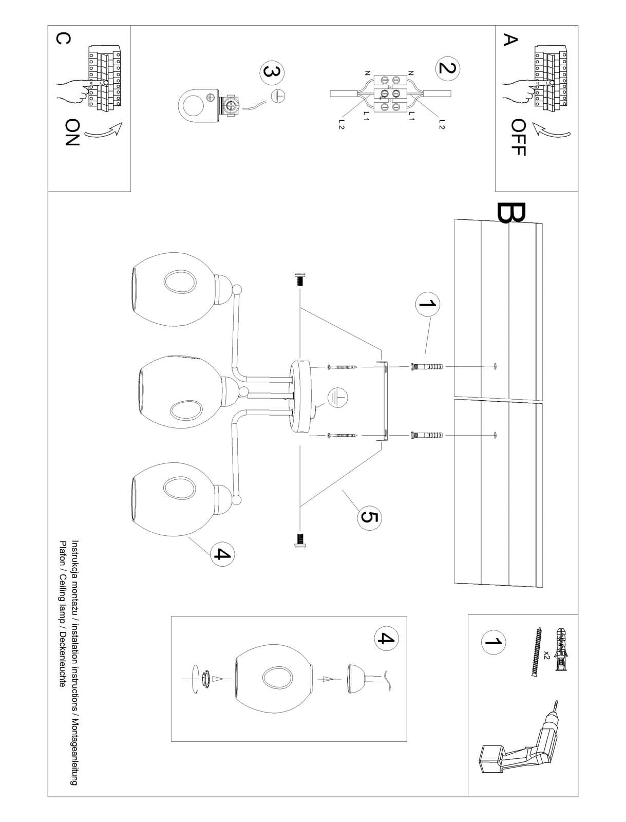 Źródła światła: 3xE27 wymienne