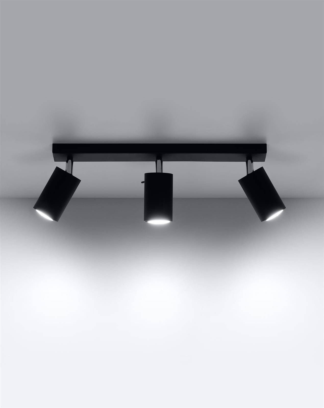 Czarna lampa sufitowa regulowana 3xGU10 plafon RING 3 spot - połączenie minimalistycznego designu z najwyższą funkcjonalnością. Lampa sufitowa czarna nowoczesna posiada chromowane przeguby, które pozwalają na regulację promieni świetlnych. Precyzja, z jaką została wykonana czarna lampa przysufitowa, jak również wysokiej jakości materiały stanowią o jej nienagannej prezencji i długowieczności.