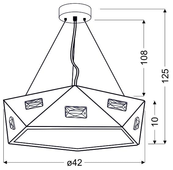 Materiał: zawiesie metalowe na linkach stalowych, abażur metalowy z kryształkami