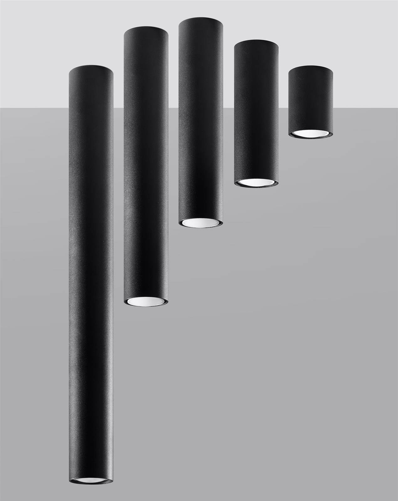 Czarna tuba sufitowa natynkowa 1xGU10, plafon LAGOS 40 - lampa sufitowa punktowa, której forma i wykorzystany materiał pięknie podkreślą oryginalny klimat industrialnych, loftowych i modernistycznych aranżacji. Oprawa sufitowa w formie wąskiego cylindra - czarna tuba sufitowa o długości 40 cm którą doceniają głównie odbiorcy poszukujący niebanalnego i efektownego oświetlenia w domu.