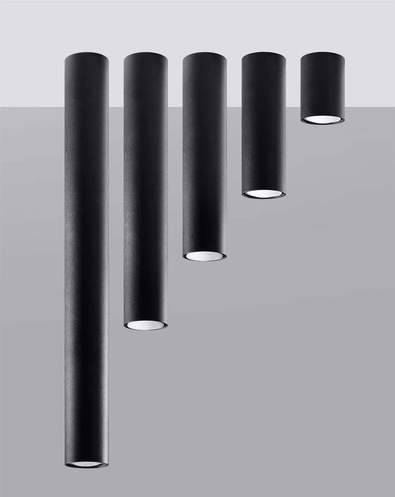 Czarna tuba sufitowa natynkowa 1xGU10, plafon LAGOS 60 - lampa sufitowa punktowa, której forma i wykorzystany materiał pięknie podkreślą oryginalny klimat industrialnych, loftowych i modernistycznych aranżacji. Oprawa sufitowa w formie wąskiego cylindra - czarna tuba sufitowa o długości 60 cm którą doceniają głównie odbiorcy poszukujący niebanalnego i efektownego oświetlenia w domu.