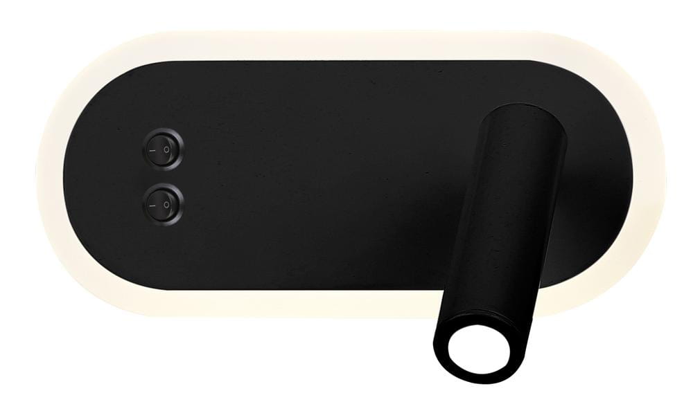 Czarny kinkiet ledowy nowoczesny z włącznikiem 6W+3W MIRACLE LED - minimalistyczny kinkiet ledowy idealny jako kinkiet do sypialni, kinkiet do pokoju nastolatka przy łóżku, lampa ścienna hotelowa.