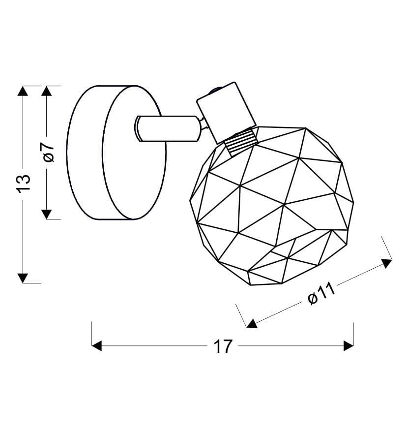 Kinkiet glamour czarny ze złotym 1XE14 40W ACROBAT połączenie dwóch kolorów, ażurowy klosz w kształcie wycinka kuli - idealnie przejrzysty, zapewniający pełne wykorzystanie źródła światła. Kinkiet glamour świetnie odnajdzie się jako lampa na korytarz, do salonu, posiada możliwość regulacji kąta nachylenia - sprawdzi się również w niskich pomieszczeniach.