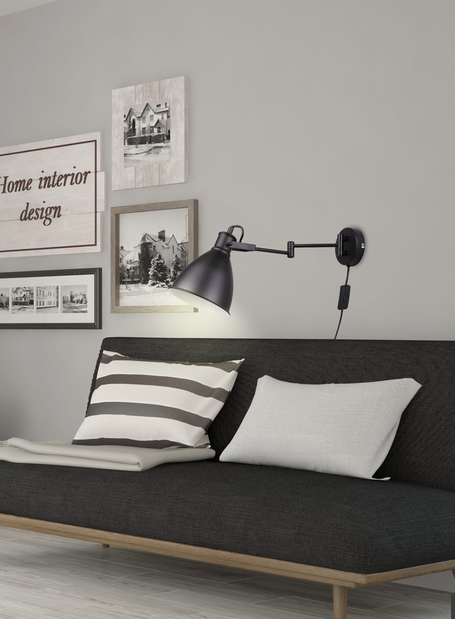 Kinkiet industrialny regulowany czarny na wysięgniku 1xE27 40W ESPERA z przewodem, wtyczką i włącznikiem