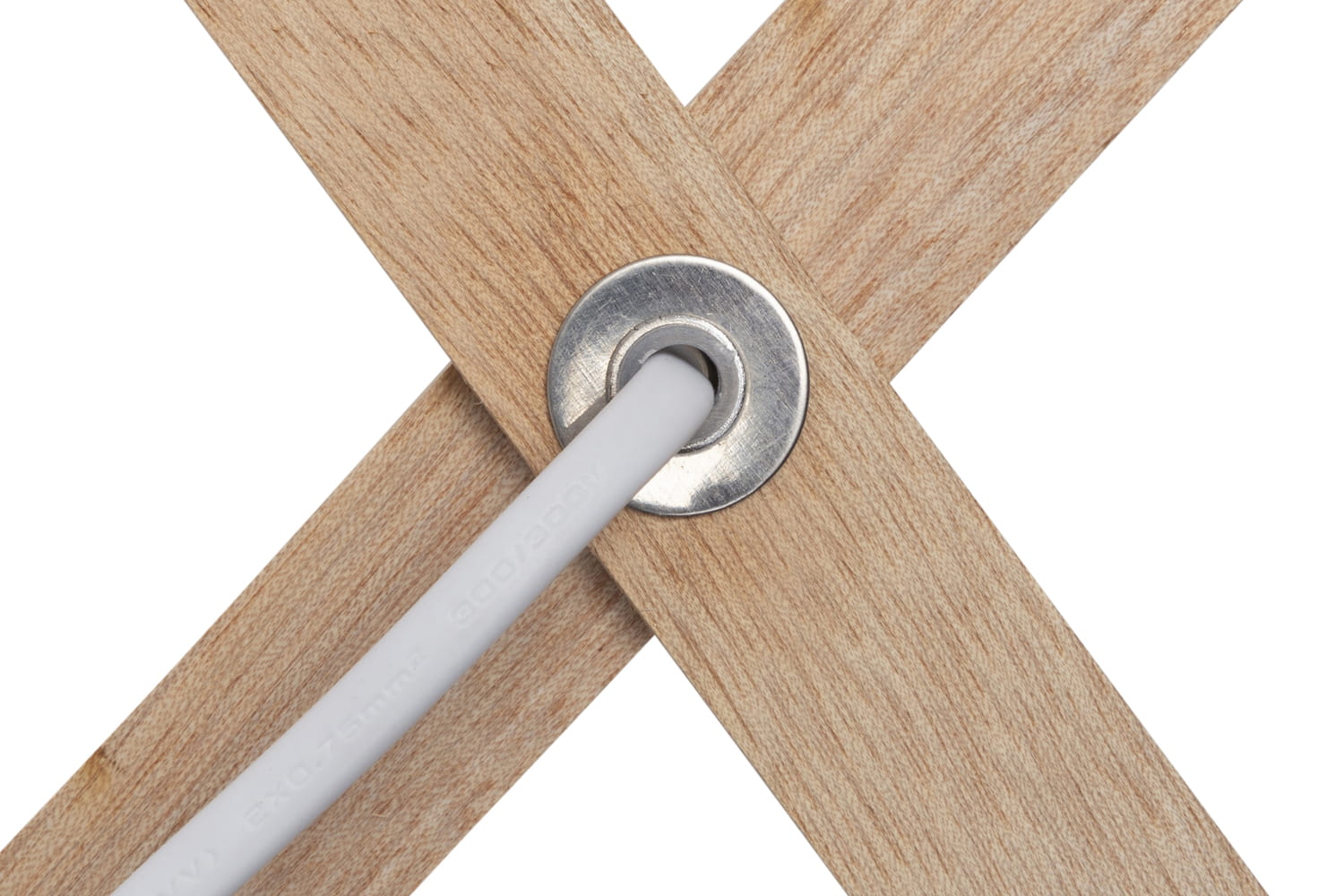 Materiał: podstawa stalowa+drewno, abażur tkanina+PCV