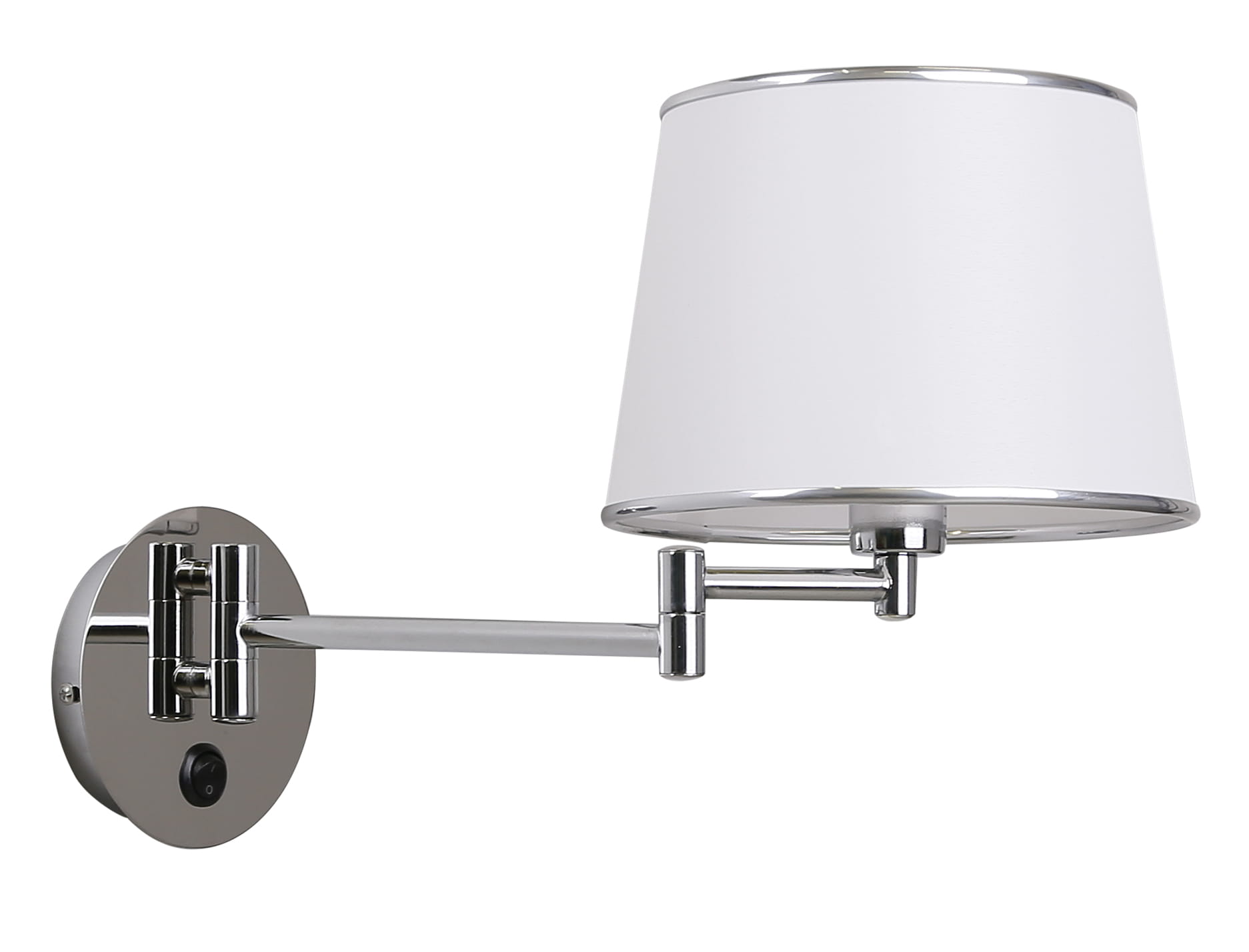 Klasyczny kinkiet regulowany klosz biały 1xE14 40W LAWA CHROM - kinkiet ścienny na chromowej podstawie z możliwością regulacji. Kinkiet do salonu, kinkiet do sypialni - świetnie się sprawdzi jako kinkiet hotelowy.