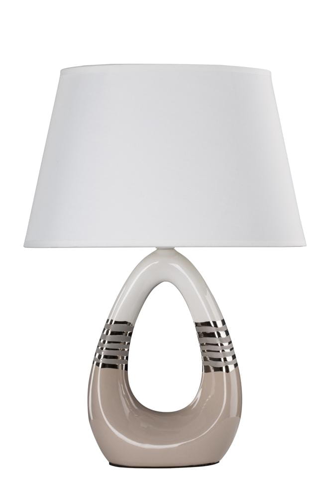 Lampa stołowa gabinetowa biała z beżowym 1xE27 46W ROMANO - niewielka lampka stojąca ceramiczna, podstawa beżowa z białym w połączeniu z kloszem z tkaniny. Sprawdzi się jako lampka nocna, lampa stołowa do salonu, lampka do sypialni - uzupełni wnętrza klasyczne oraz nowoczesne.