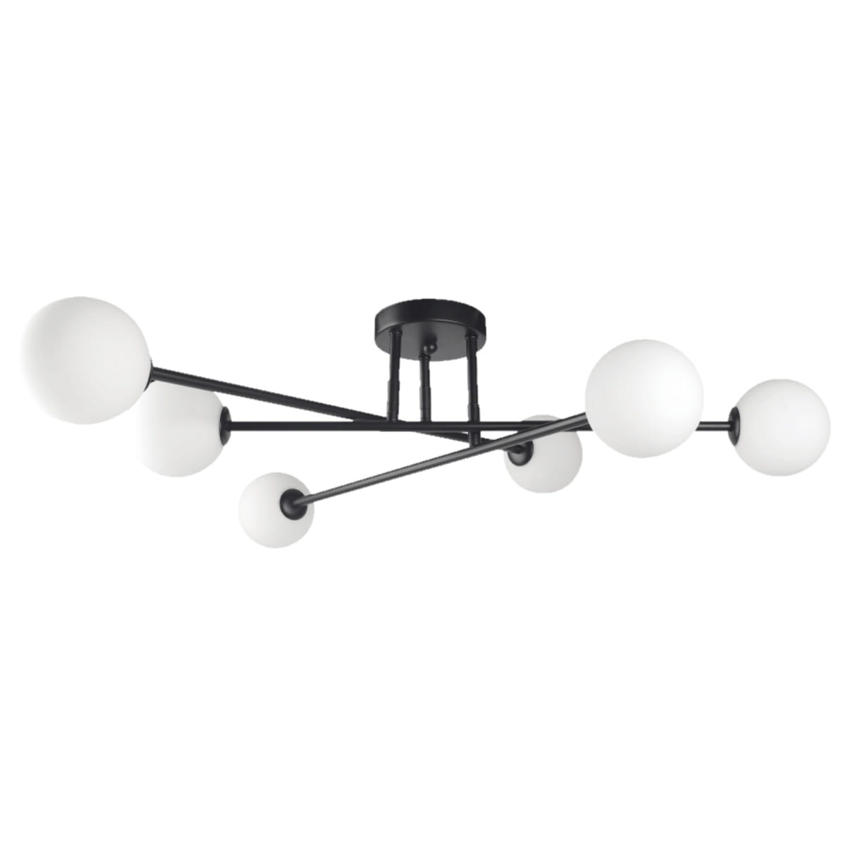 Lampa sufitowa klosze białe kule Dorado 6xG9 w kolorze czarnym świetnie prezentuje się jako ekskluzywny element oświetleniowy ale również dekoracyjny w pomieszczeniach o nieco niższych sufitach.