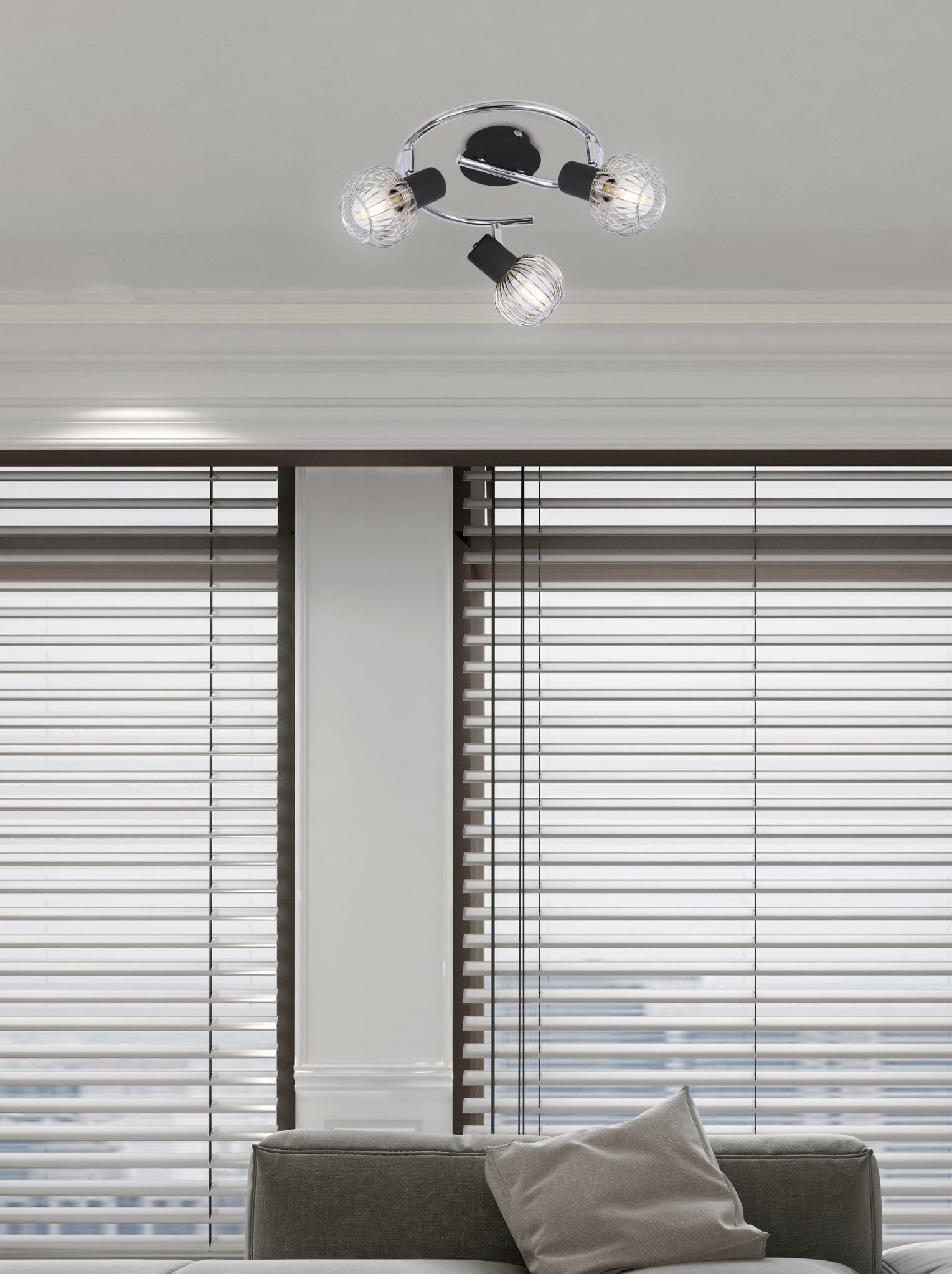 Lampa sufitowa czarna chrom spirala 3xE14 40W OSLO połączenie dwóch kolorów - biała podstawa i złote ażurowe klosze w kształcie wycinka kuli - idealnie przejrzyste. Lampa sufitowa na korytarz, lampa sufitowa do kuchni posiada standardowo możliwość regulacji kąta nachylenia.