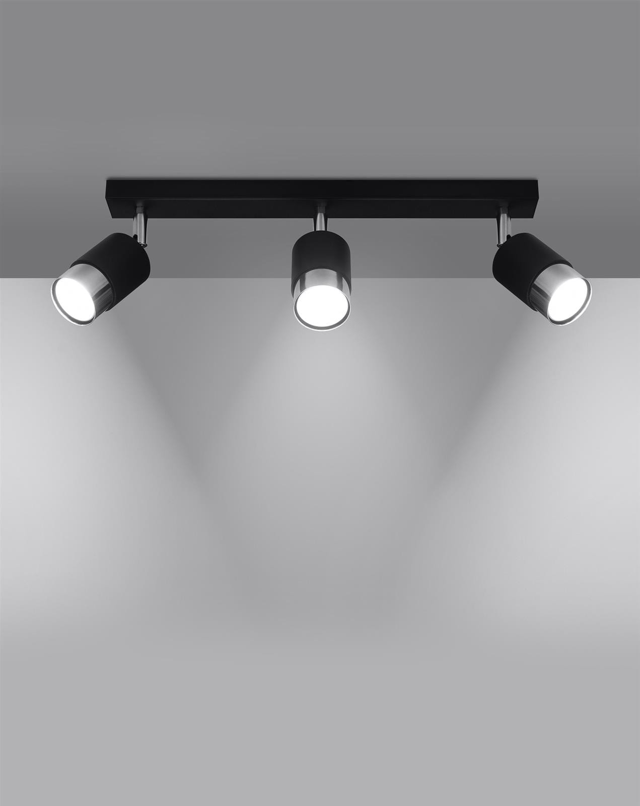 Lampa sufitowa listwa potrójna czarna chrom 3xGU10, plafon sufitowy NERO 3 - nowoczesna lampa do kuchni, lampa na korytarz, lampa do gabinetu - elegancka, nowoczesna, loftowa, biurowa - można ją przedstawić na wiele sposobów. Regulowane ramiona pozwalają na dowolny sposób oświetlenia pomieszczenia, dając pełną swobodę aranżacji. Teraz możesz skierować strumień światła w jedno miejsce, pozostawiając inną część pokoju w przyjemnym półmroku.