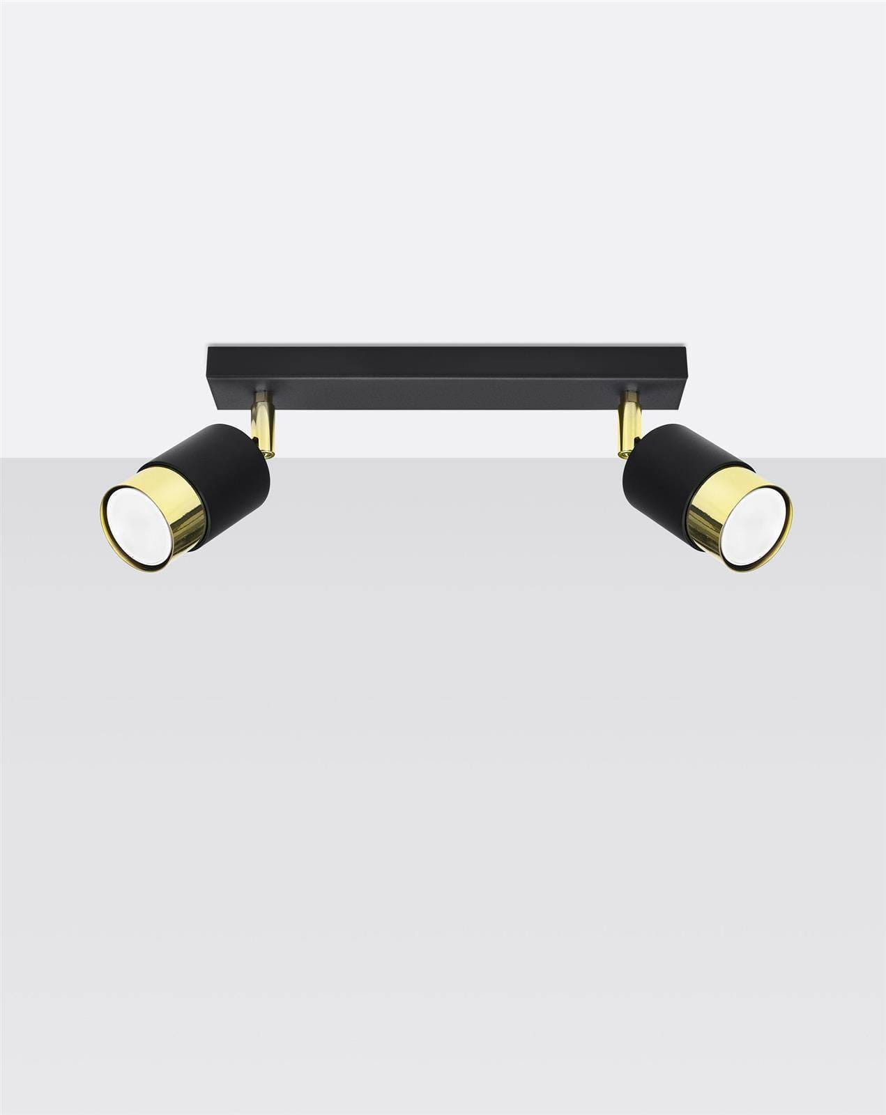 Lampa sufitowa podwójna czarna ze złotym 2xGU10, plafon sufitowy NERO 2 - nowoczesna lampa do kuchni, lampa na korytarz, lampa do gabinetu - elegancka, nowoczesna, loftowa, biurowa - można ją przedstawić na wiele sposobów. Regulowane ramiona pozwalają na dowolny sposób oświetlenia pomieszczenia, dając pełną swobodę aranżacji. Teraz możesz skierować strumień światła w jedno miejsce, pozostawiając inną część pokoju w przyjemnym półmroku.