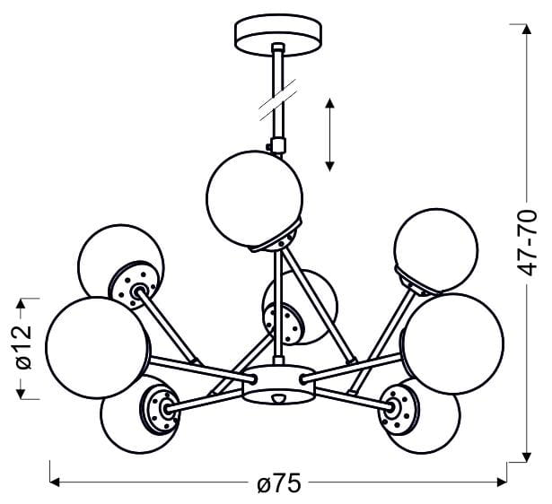 Lampa sufitowa wisząca klosze szklane kule, żyrandol do salonu BEST 8X40W E14 CHROM+MIEDŹ - połączenie lustrzanego chromu z bezbarwnymi kloszami, wzbogaconymi subtelnym motywem. Żyrandol nowoczesny posiada również miedziowane, ozdobne tuleje na oprawkach dodają blasku po zaświeceniu oraz możliwość regulacji wysokości na teleskopowej sztycy.
