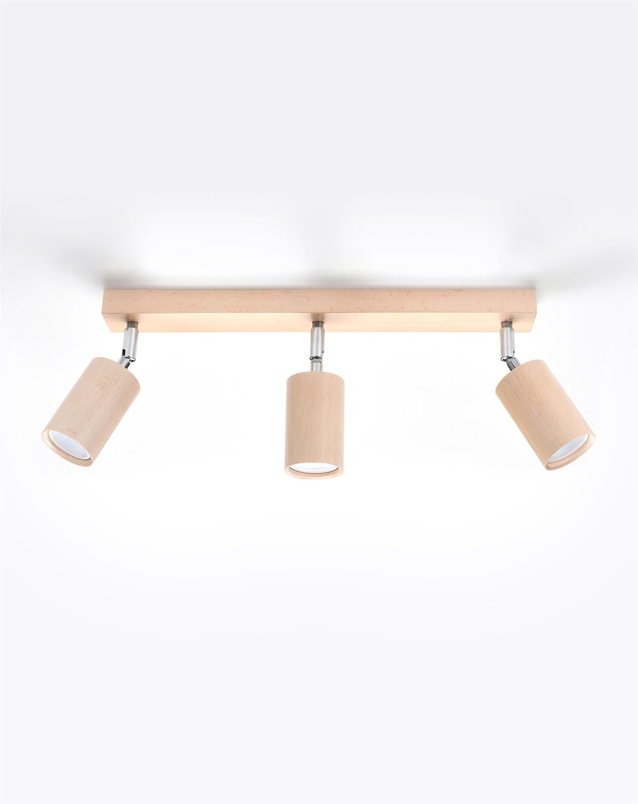 Lampa sufitowa z drewna regulowana podwójna spot BERG 3 naturalne drewno - prosty kształt i naturalny, ciepły odcień drewna sprawiają, że lampa sufitowa z drewna jest oświetleniem niezwykle stylowym. Potrójna lampa sufitowa z drewna świetnie sprawdza się we wnętrzach klasycznych, rustykalnych, a także w skandynawskim wystroju, nadając przestrzeni odrobiny ciepła i przytulnego charakteru. Pięknie rozświetli zarówno nieduży przedpokój, ale sprawdzi się również jako lampa do salonu, lampa kuchenna.