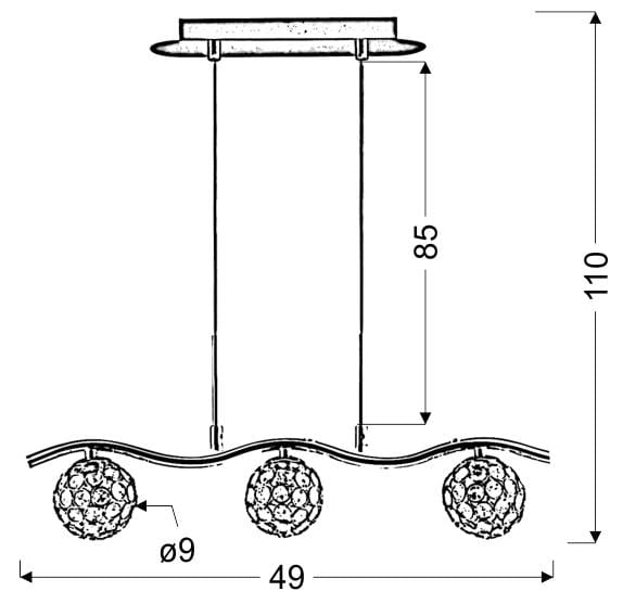 Lampa wisząca kryształki STARLET 3XG9 40W CHROM - nieprzemijające piękno kryształu - szyku dodają wysokiej jakości szklane kryształki połyskujące w padającym na nie świetle i odbijające się w lustrzanej powierzchni chromowej podstawy. Lampa do salonu, lampa do jadalni posiada niespotykanie elegancki klosz w kształcie zamkniętej kuli dzięki swej transparentności nie ograniczający przepływu strumienia światła. Srebrny żyrandol nowoczesny zawieszony na metalowych linkach umożliwiających regulację wysokości doskonale rozświetli wnętrze salonu, przedpokoju i jadalni.