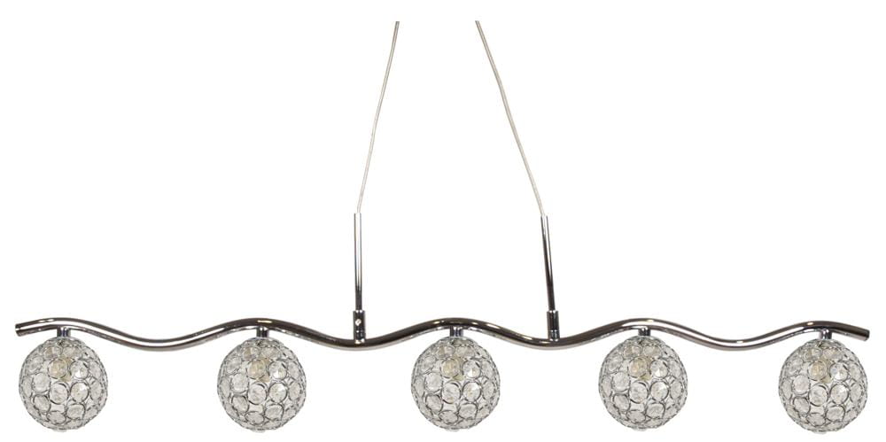 Lampa wisząca kryształki STARLET 5XG9 40W CHROM - nieprzemijające piękno kryształu - szyku dodają wysokiej jakości szklane kryształki połyskujące w padającym na nie świetle i odbijające się w lustrzanej powierzchni chromowej podstawy. Lampa nad stół do jadalni, lampa do salonu posiada niespotykanie elegancki klosz w kształcie zamkniętej kuli dzięki swej transparentności nie ogranicza przepływu strumienia światła. Nowoczesny żyrandol do jadalni, żyrandol do salonu zawieszony na metalowych linkach umożliwiających regulację wysokości doskonale rozświetli eleganckie wnętrze.
