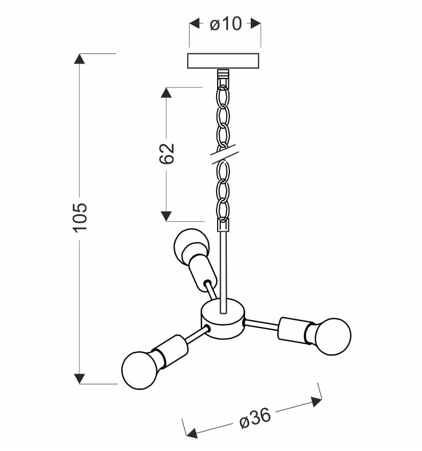 Lampa wisząca loft czarna 3xE27 60W SPARTA - minimalistyczna lampa wisząca potrójna loft z metalowym łańcuchem.
