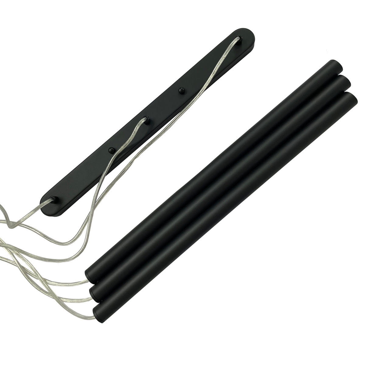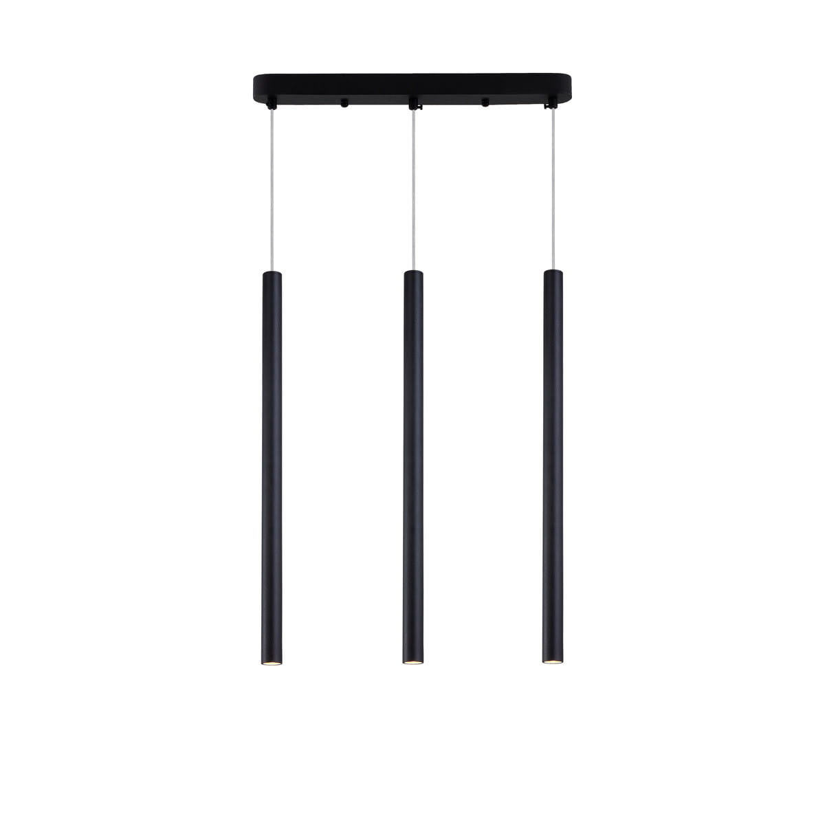 Czarna lampa wisząca tuby sufitowe o średnicy 2,5 cm i długości 50 cm na końcu których znajduje się wejście na żarówkę o gwincie G9. Imponująca długość i czarny kolor sprawia, iż tuby sufitowe potrójne będą idealną propozycją oświetleniową do nowoczesnych aranżacji wnętrz. Lampa wisząca tuby sufitowe LUNGO sprawdzi się również we wnętrzach minimalistycznych jako lampa industrialna, lampa loftowa.