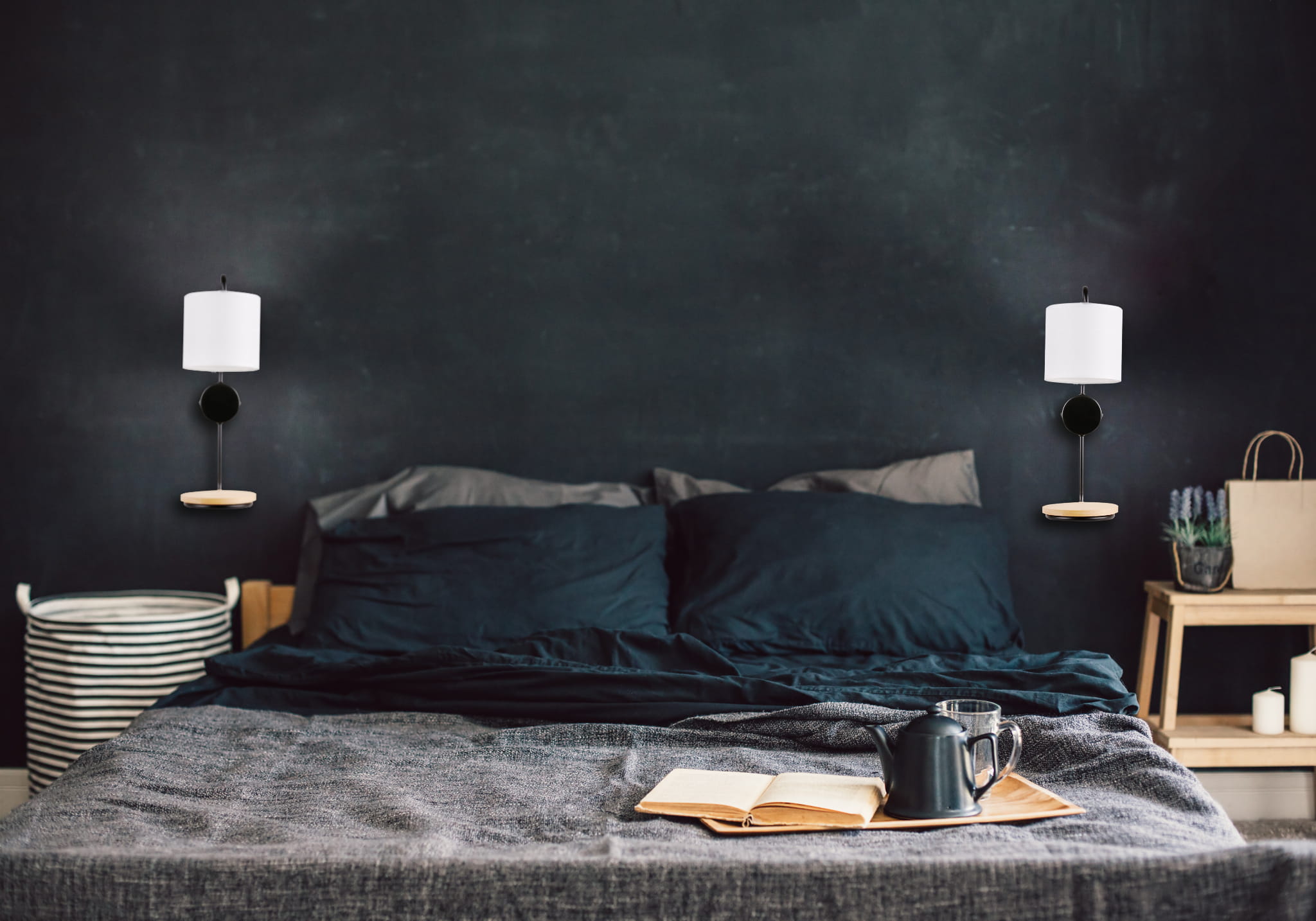 Nowoczesny kinkiet loftowy czarny z półką 1xE14 40W ALPINE - kinkiet do sypialni z podręczną półeczką na telefon.