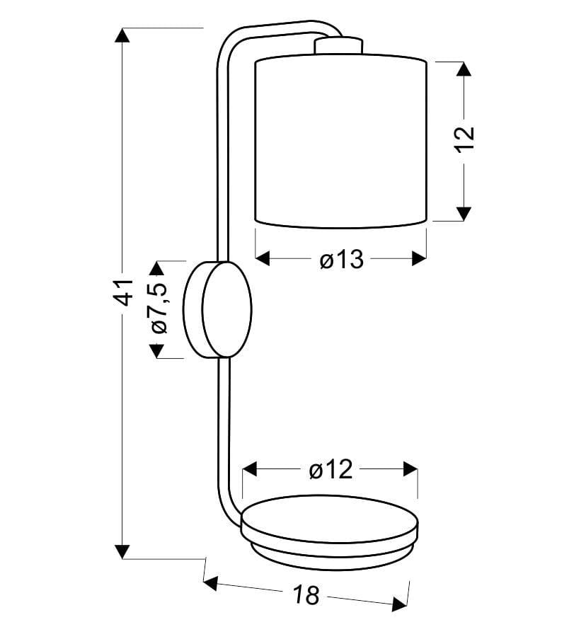 Materiał: podstawa stalowa + drewno, abażur tkanina + PCV